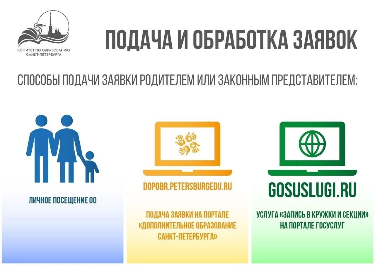 Сообщаем вам, что полным ходом идëт запись детей на занятия в объединениях дополнительного образования детей нашей школы. Запись осуществляется онлайн через сайт «НАВИГАТОР Петербургского дополнительного образования»: dopobr.petersburgedu.ru/.