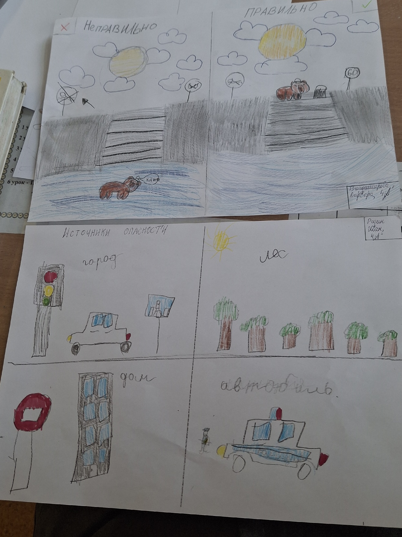 Ребята сделали несколько иллюстраций с изображением потенциальных источников опасности: творческий подход всегда способствует более эффективному усвоению информации!