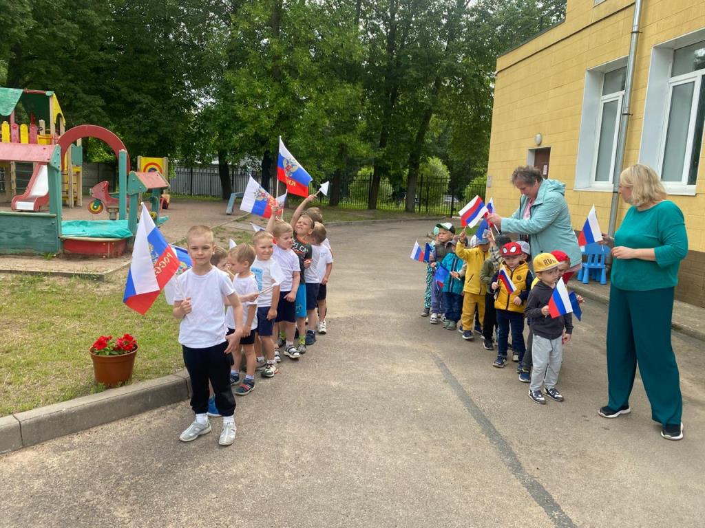 День России – это отличный повод рассказать детям еще раз об истории нашей великой страны, о многообразии народных традиций. В группах воспитатели провели беседы о предстоящем празднике. Дети узнали, почему наш флаг состоит из трех цветов, и что обозначает каждый цвет; рассмотрели герб нашей страны, познакомились с его историей.