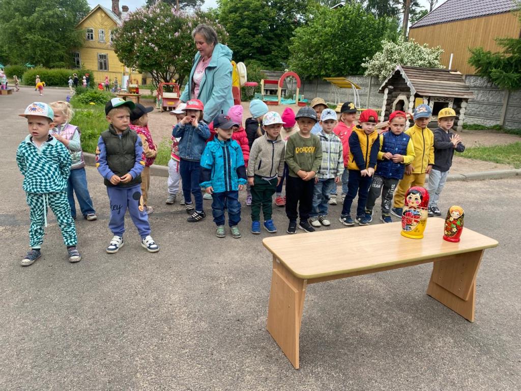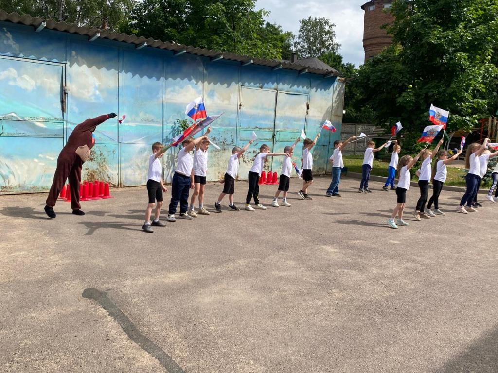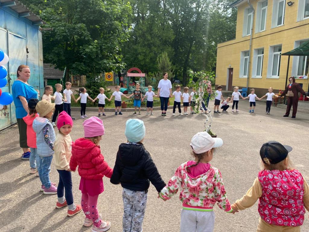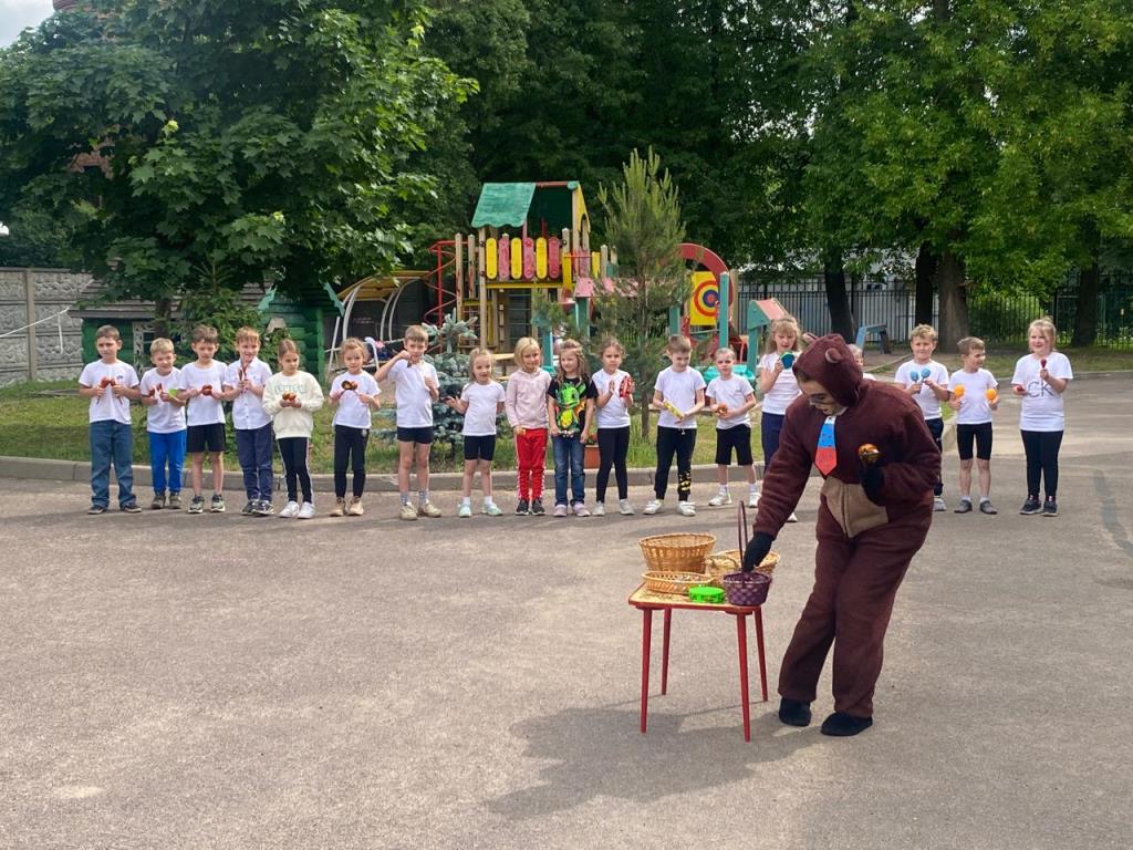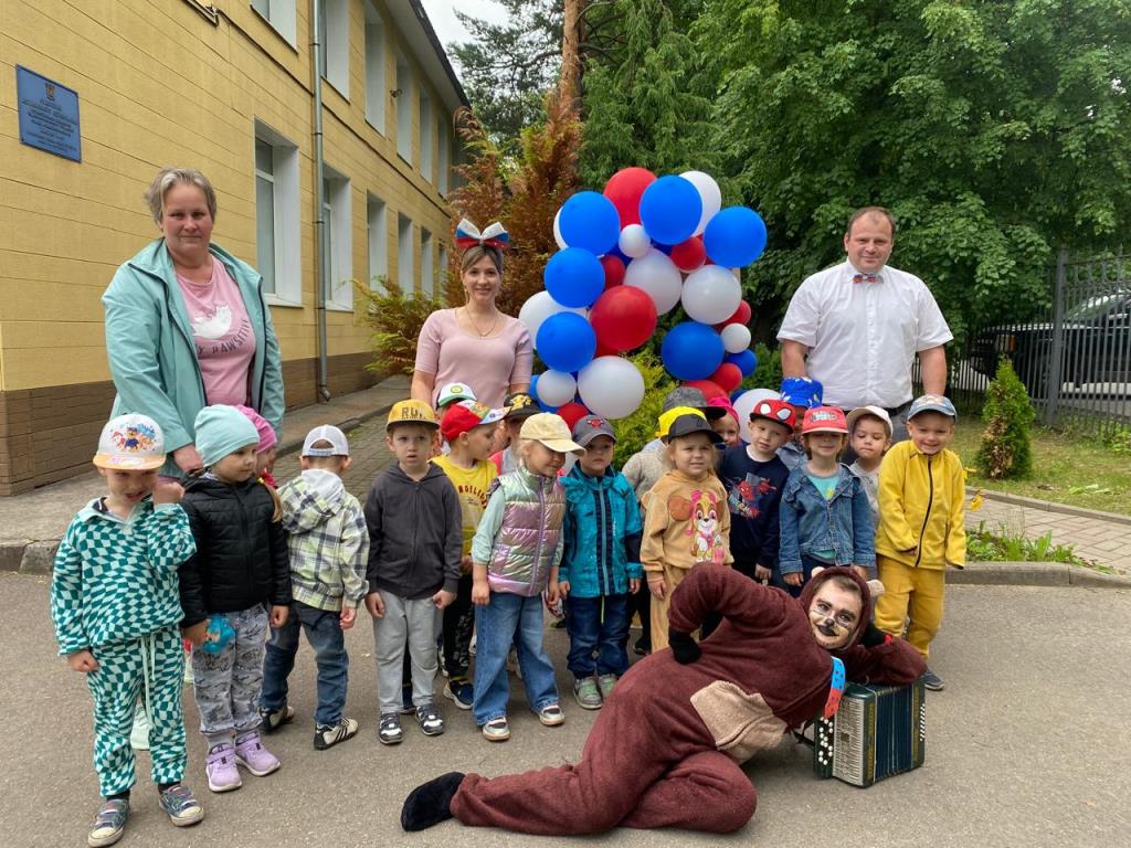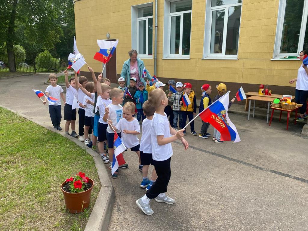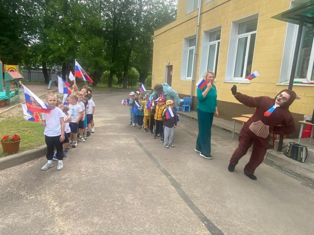 На празднике ребята читали стихи о Родине, о родном крае и счастливом детстве, водили хоровод возле русской красавицы березки, собирали матрешек, играли на народных инструментах. В торжественном молчании стояли маленькие граждане России, когда звучал гимн страны, с достоинством держали Российские флаги. А в гости к дошкольникам в этот день пришел русский медведь, который с радостью поучаствовал во всех веселых конкурсах малышей.