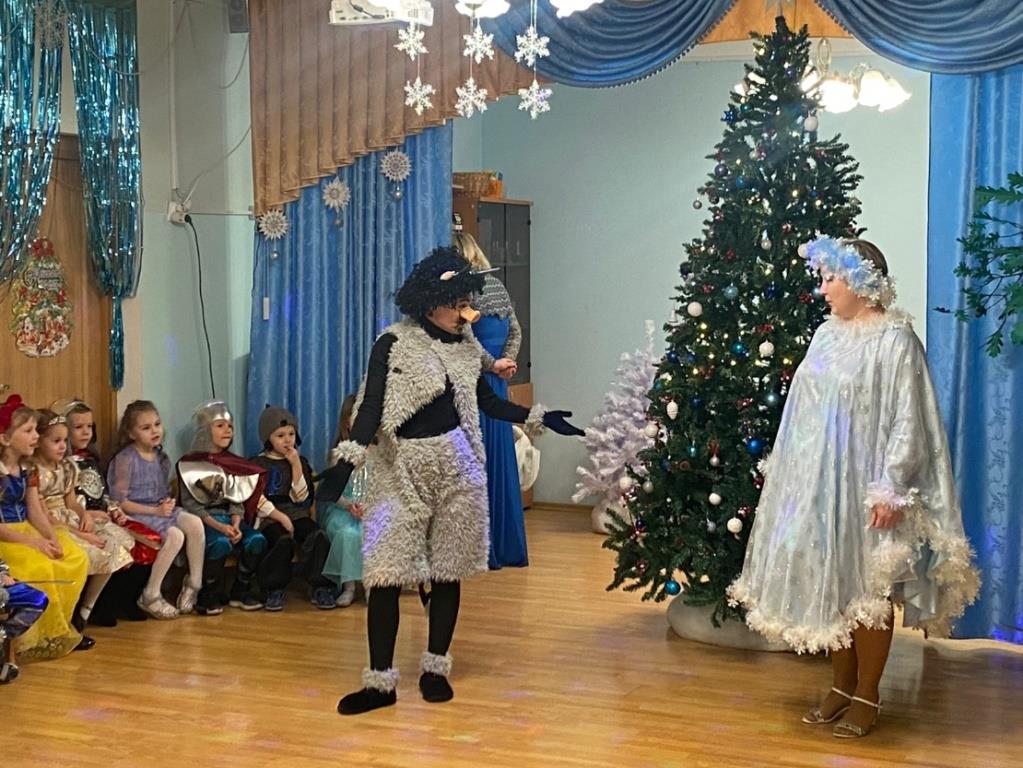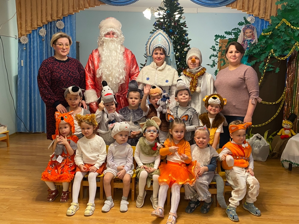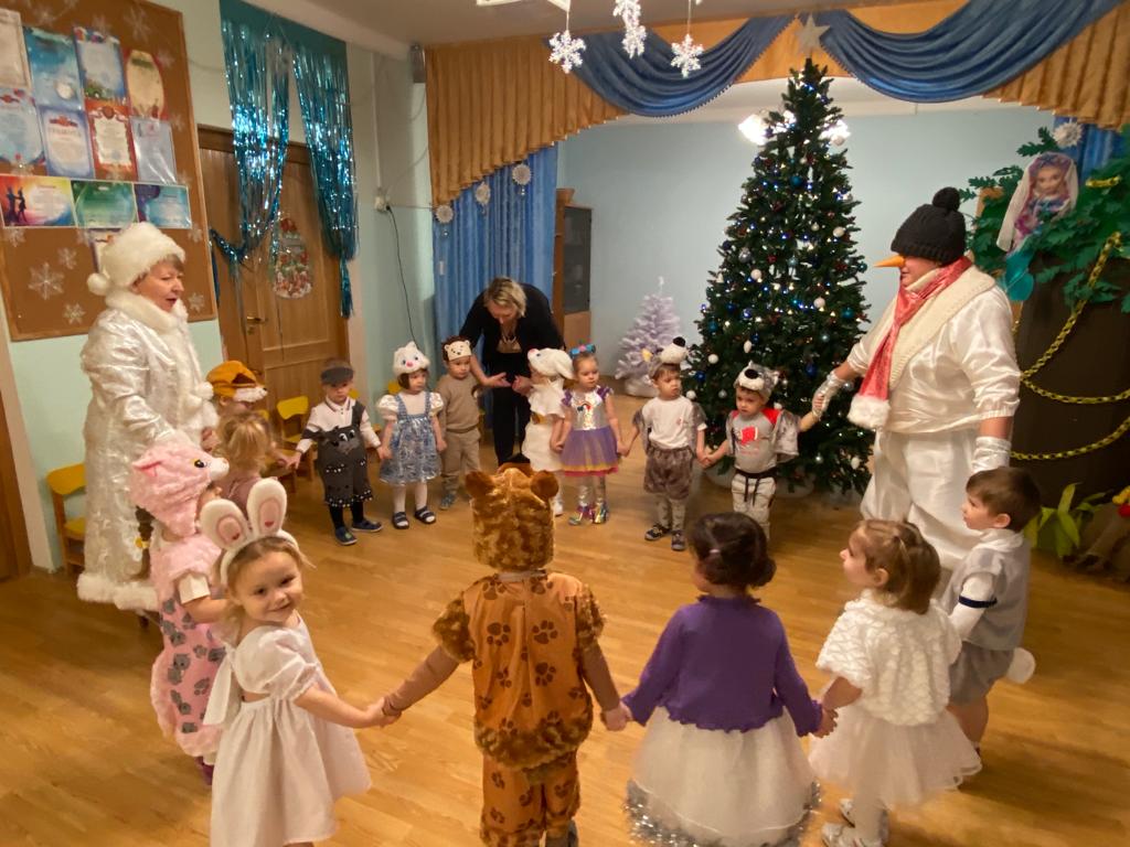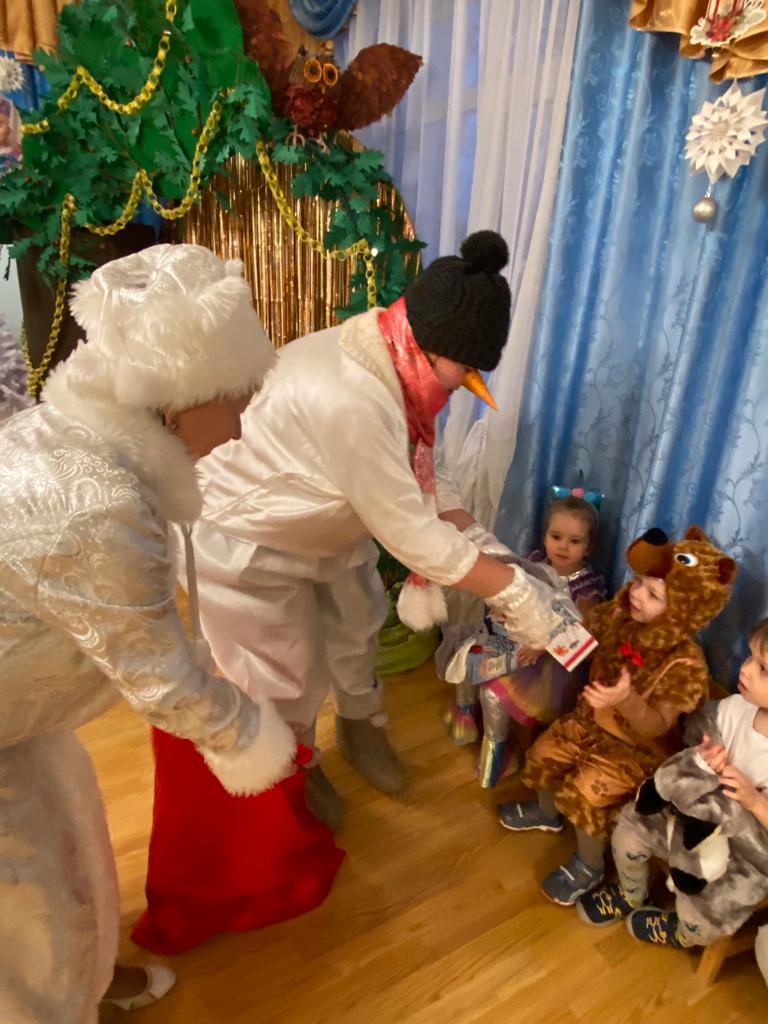 К самым маленьким воспитанникам группы раннего возраста «Кроха» приходили Снегурочка и Снеговик. Вместе с малышами они играли и танцевали. Снегурочка передала ребятам подарки от Деда Мороза.