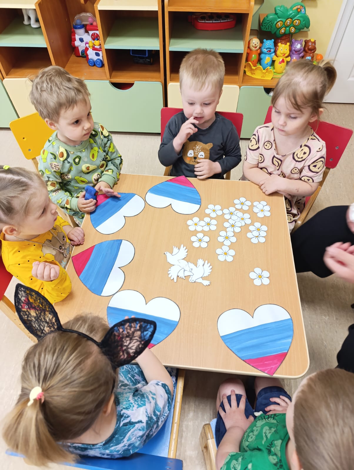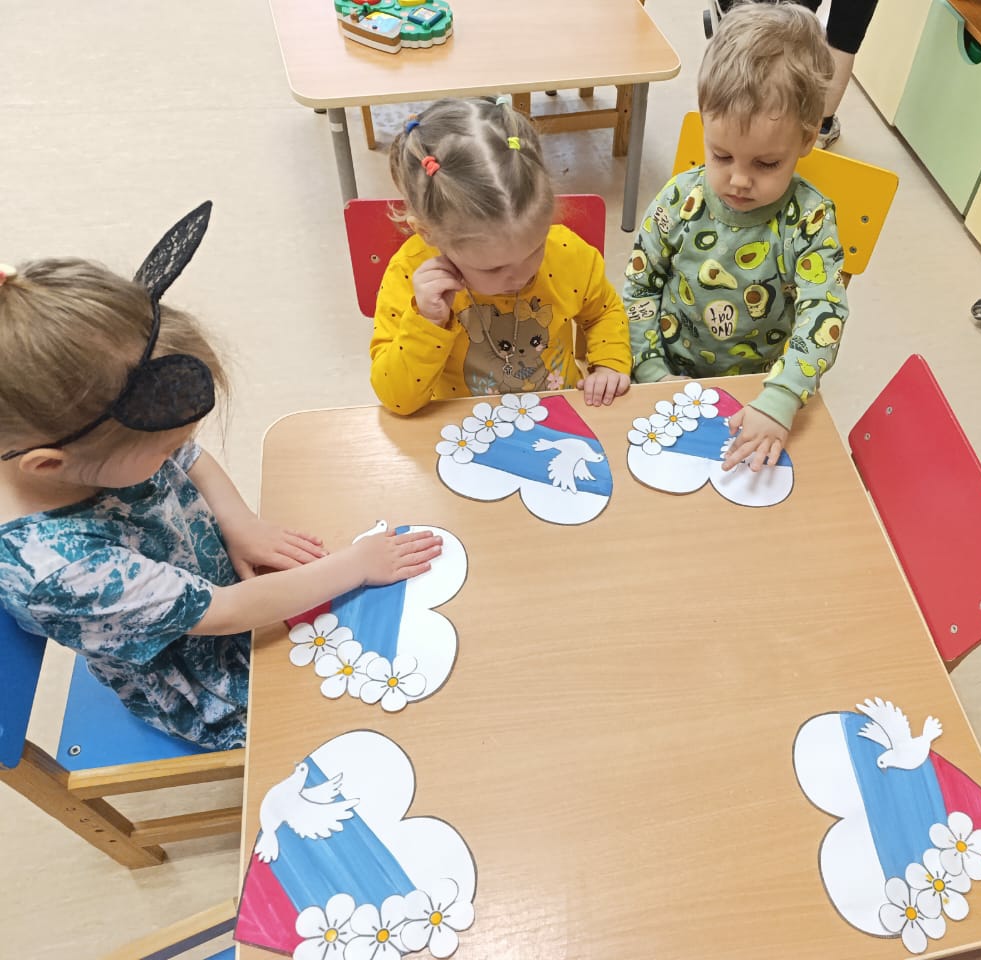 А в конце мероприятия ребята изготовили флаг России в технике аппликации.