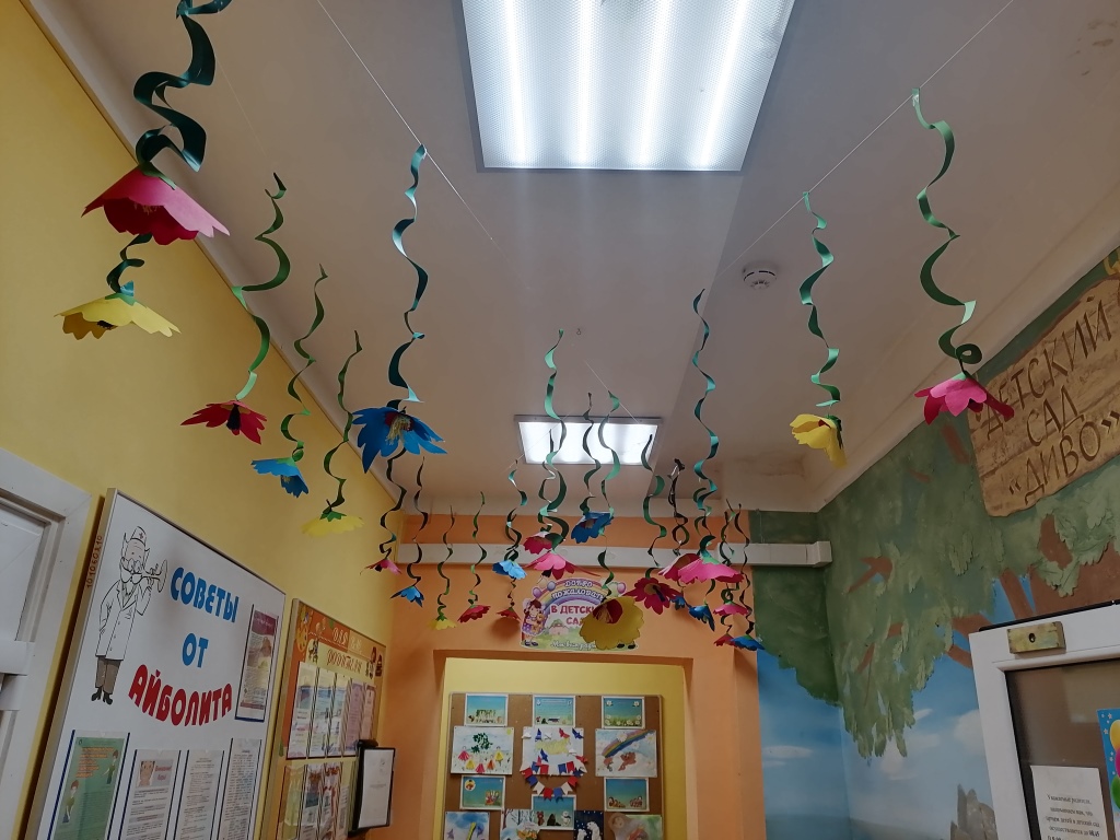 Дети старшей группы "Умнички" совместно с воспитателями, украсили холл детского сада волшебными цветами. Использование детских работ в оформление позволяет создать среду, способствующую эмоционально - целостному, познавательному , социально - личностному развитию ребенка, создает благоприятные условия, способствующие проявлению индивидуальности каждого воспитанника.
