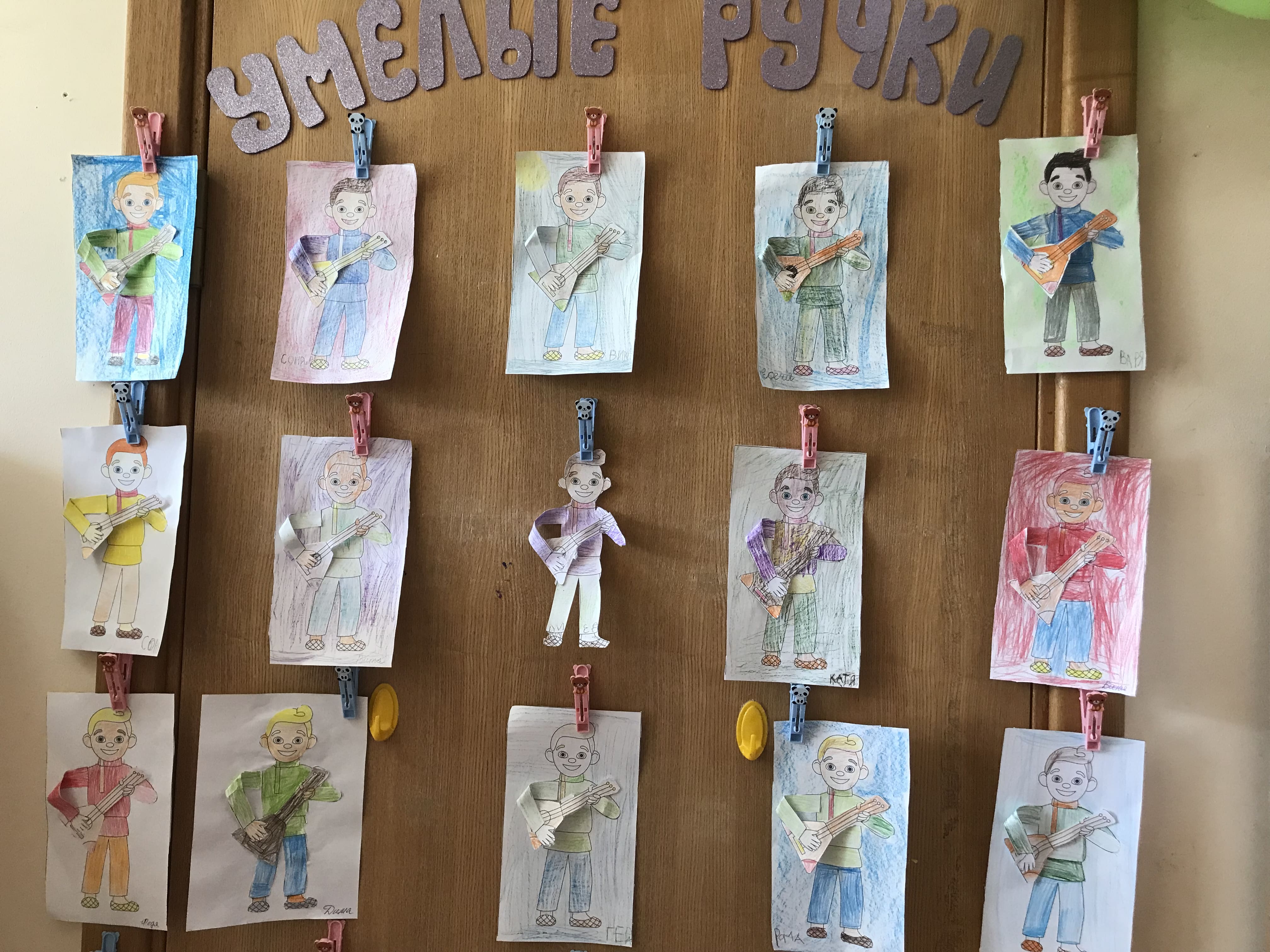 Детям рассказали историю возникновения русского народного инструмента, обсудили, из чего она состоит. Прослушали сказку: «О балалайке - символом русской души.»А чтобы еще один летний день запомнился ярким и радостным, решили сделать аппликацию: «Балалаечник».