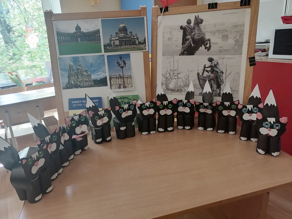 27 мая отмечает свой день рождения наш славный город Санкт-Петербург. Одним из символов Санкт-Петербурга являются коты.Котов любят во всех городах нашей страны, почему же тогда они стали символом именно Петербурга ? Сегодня на занятии дети старшей группы "Умнички" об этом узнали. Также поговорили о своих домашних питомцах и конечно же вспомнили котов Эрмитажа, а в завершении изготовили и своего котика.