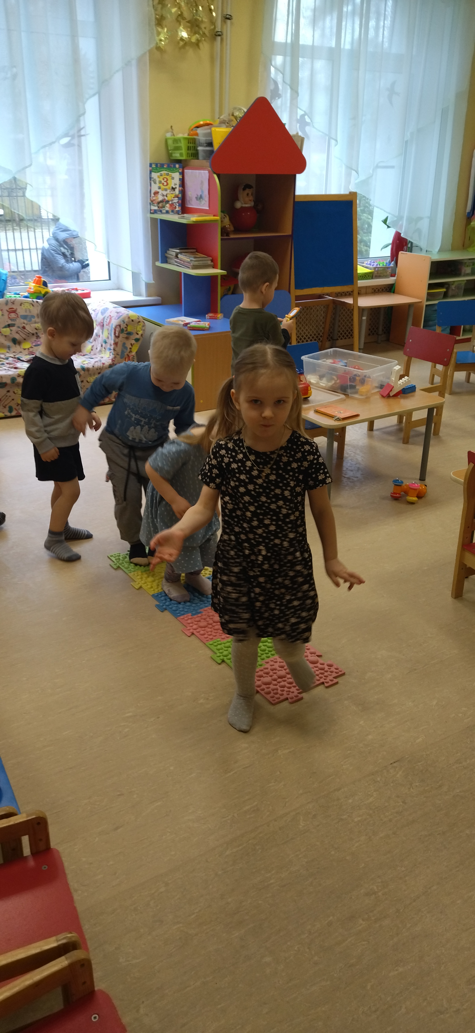 В нашей группе раннего возраста широко используются здоровьесберегающие технологии для сохранения и укрепления здоровья детей. Важным моментом в этом направлении является массаж стопы ребенка, цель которого - воздействие на биологически активные центры на ногах. Для массажа стопы можно использовать массажёры, гимнастические палки, шипованные коврики, ребристые дорожки, массажные мячи. Массажные коврики - дорожки, используются в целях оздоровительной работы после дневного сна, которые имеют несколько видов рельефной поверхности, а, следовательно, отличаются степенью воздействия на стопы ребенка. Во время ходьбы по этим дорожкам, дети сопровождают свои действия речью, трогают, щупают руками поверхность и детали дорожки. К тому же дети приучаются ходить друг за другом в колонне, не толкаться, сдерживать себя. Ходьба по массажным дорожкам – это прекрасное средство тренировки мышц стопы. Ребенок ставит ножку по-разному, при этом по-разному работают различные мышцы, а нервные окончания получают различные сигналы и в результате получается тренировка нервно-мышечной системы. И все это происходит в игре, благодаря чему ребенок испытывает положительные эмоции.
