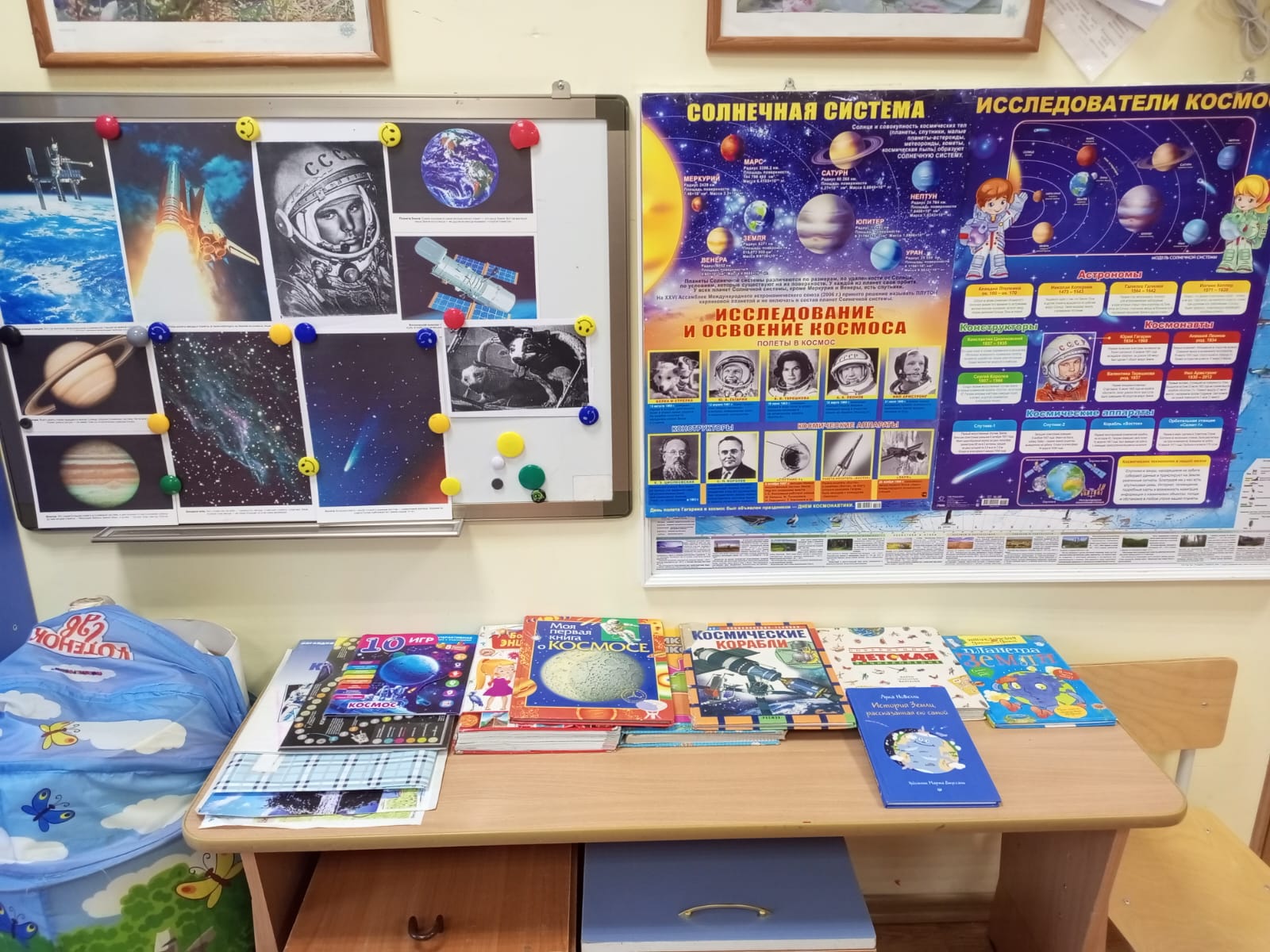 Для расширения кругозора в группе размещены иллюстрации и фотографии о Вселенной, космонавтах, спутниках и космических кораблях. В книжный уголок внесены энциклопедии и книги на данную тему. В беседах с воспитателями дети узнали о людях, которые проложили путь к звездам, о звездах, кометах, планетах больших и маленьких. Узнав так много нового, ребята не смогли не отобразить свои впечатления в игровой, конструктивной и творческой деятельности.