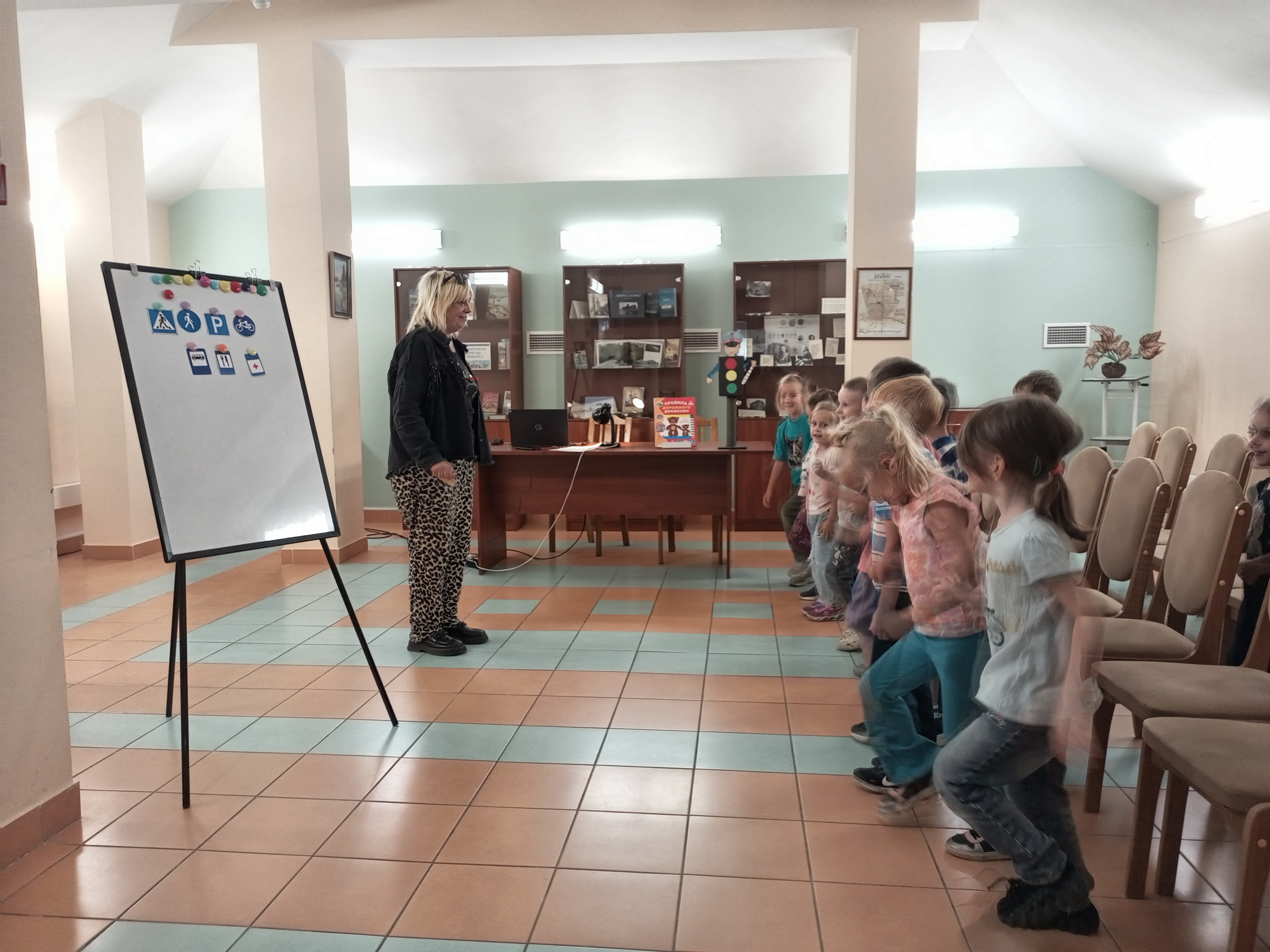 По дороге малыши повторили основные правила дорожной безопасности, а также познакомились с названиями улиц, по которым добирались до библиотеки.