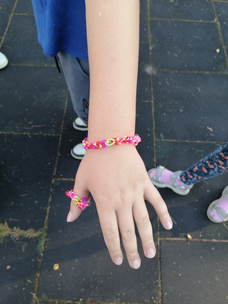 На прогулке дети подготовительной к школе группы "УМНИЧКИ", занимались плетением из резиночек. Для кого - то - это новое увлечение, а кто-то уже знаком с таким видом деятельности, но все без исключения получили удовольствие от плетения. Из маленьких цветных резиночек можно сплести привлекательные стильные украшения: браслеты, колье и многое другое. Занимаясь плетением из резиночек ребёнок учится: