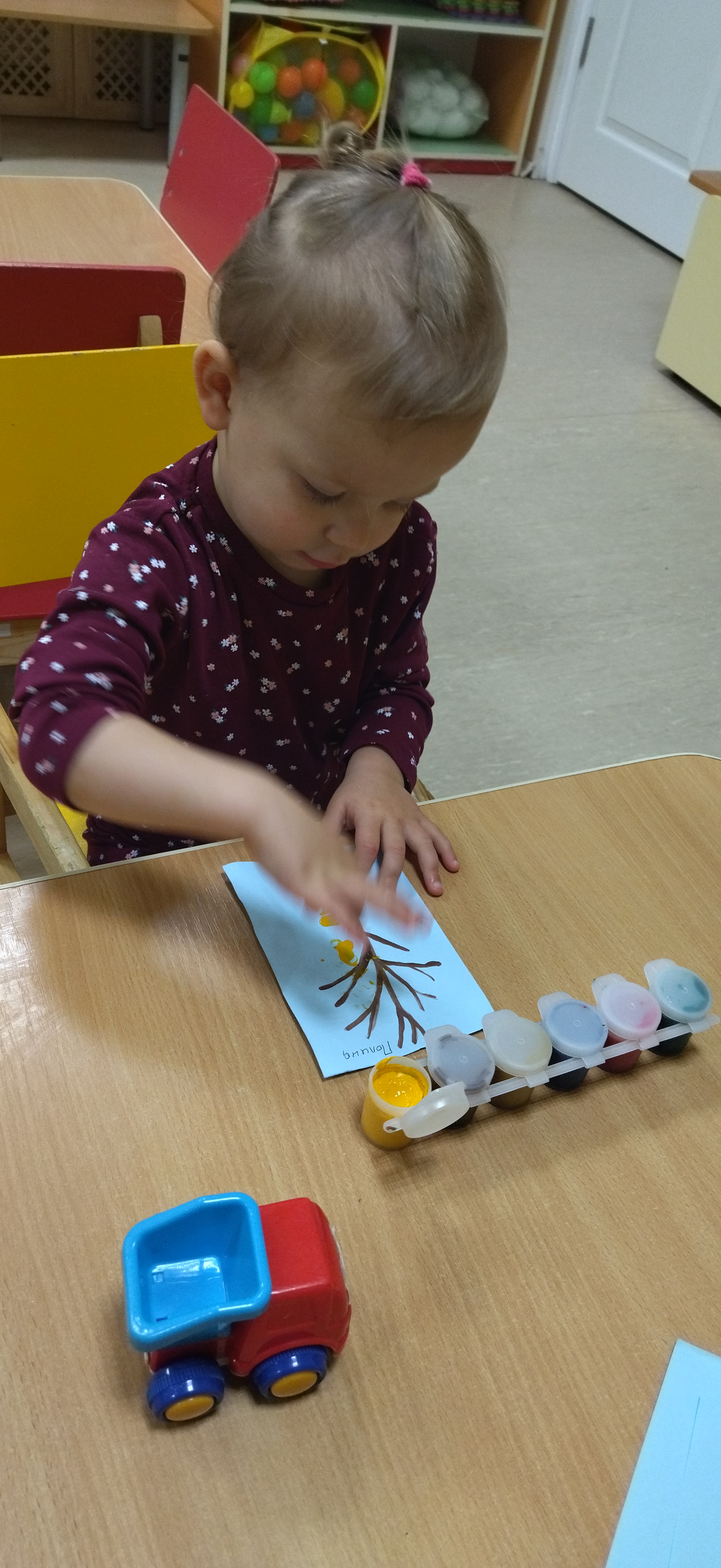 В группе раннего возраста прошло увлекательное нетрадиционное рисование пальчиками "Осеннее дерево".