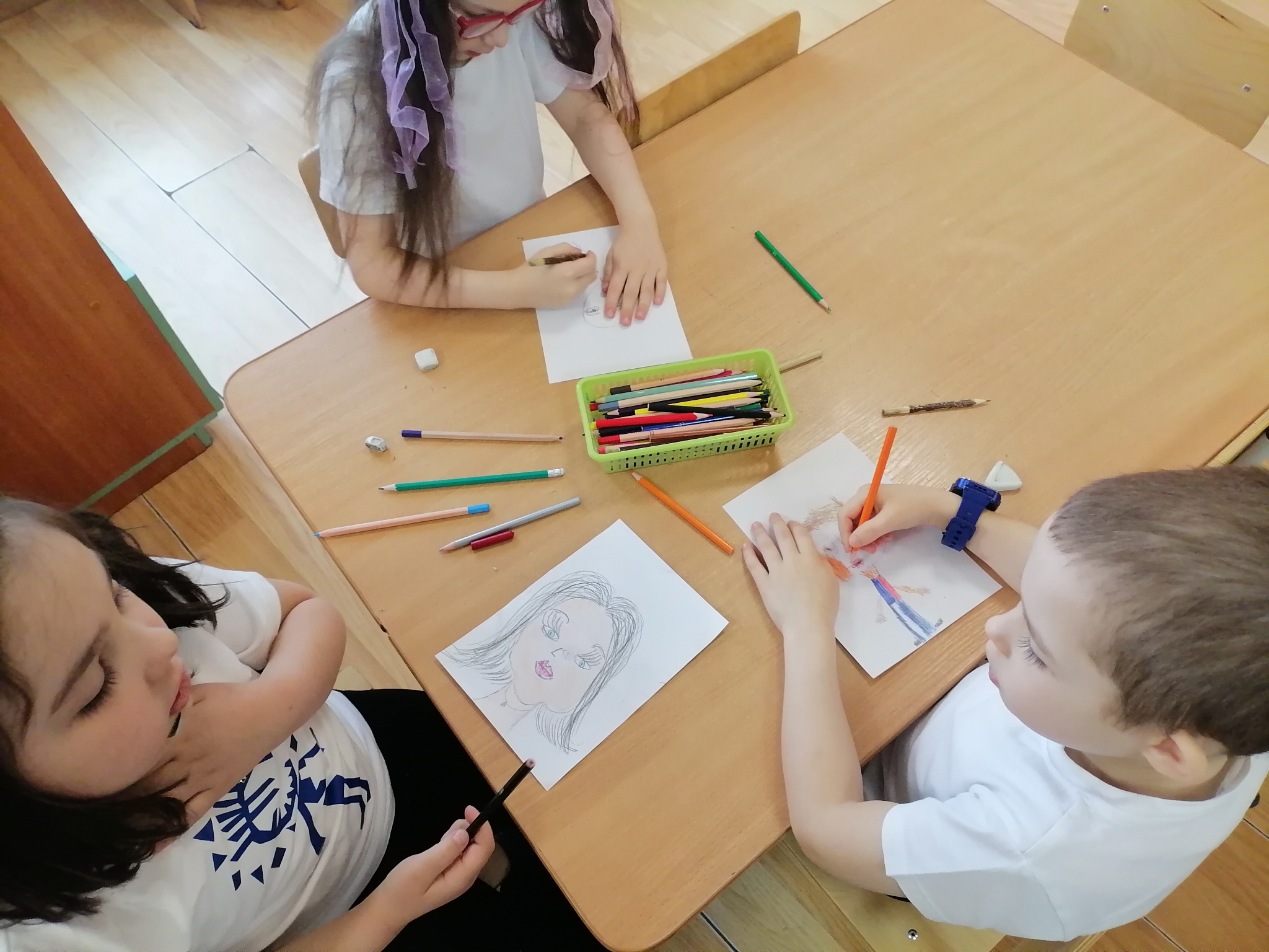 Воспитанники подготовительной группы попробовали себя в роли художников: рисовали автопортреты, а потом угадывали, кто изображён на каждом рисунке.