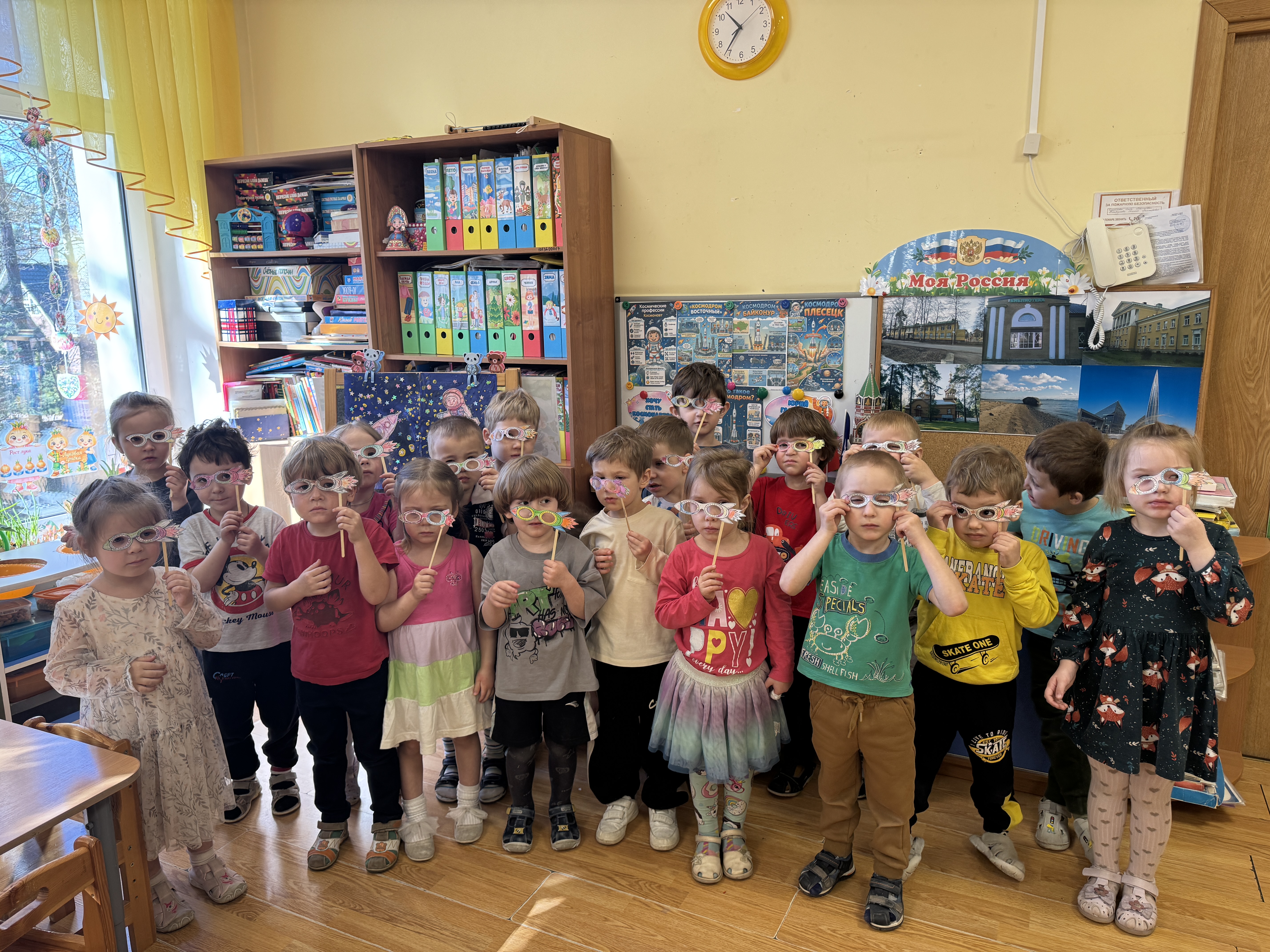 Во время образовательной деятельности по художественно-эстетическому развитию, дети сделали «очки космонавта», которые с удовольствием забрали домой до дальнейшей игры.