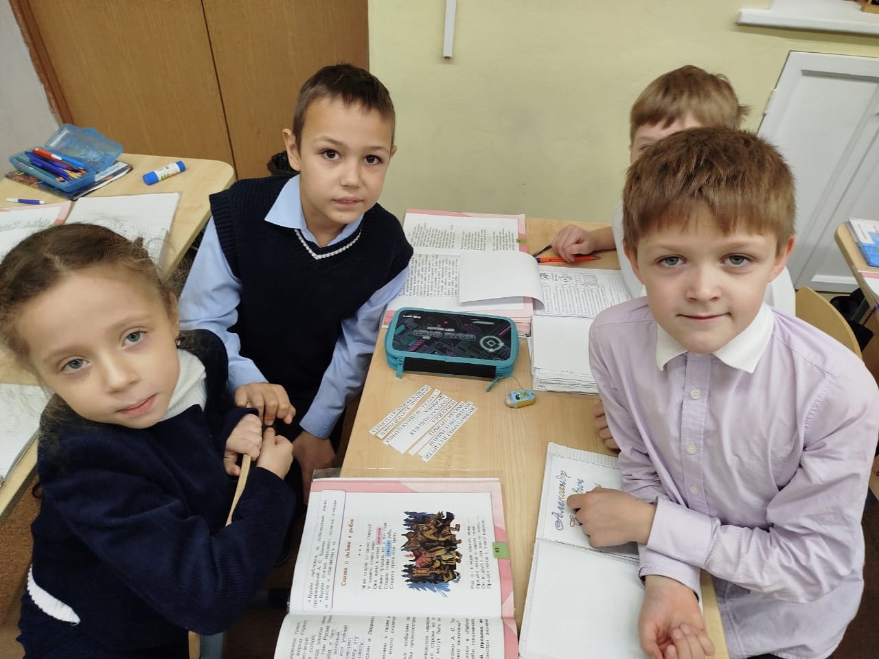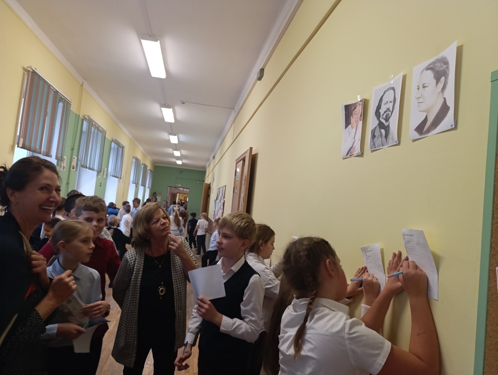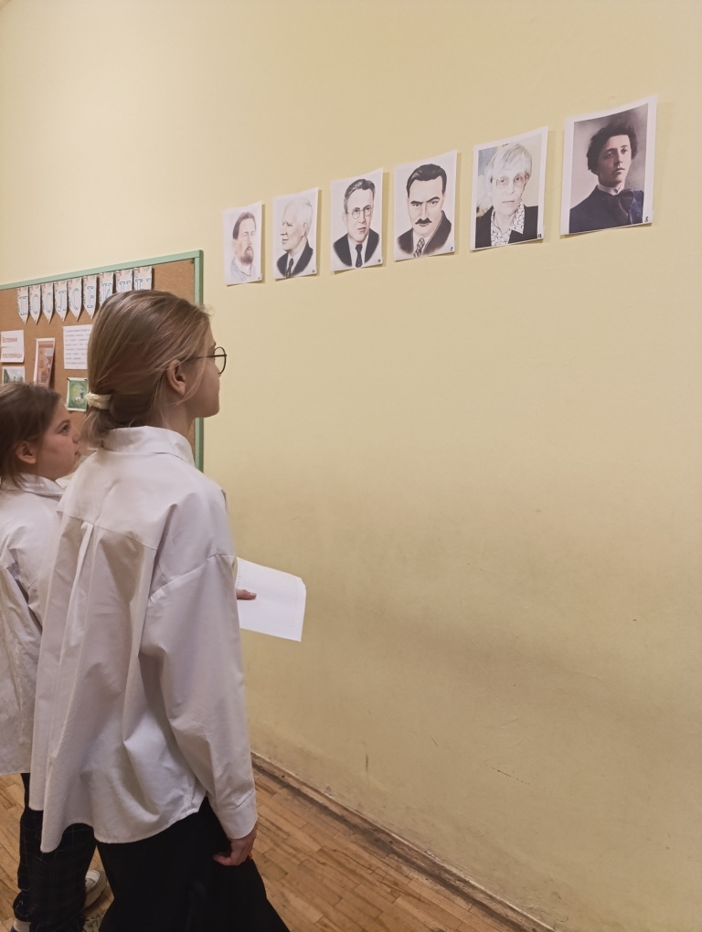 На переменах ребята превращаются в литературных детективов — играют в интеллектуальную игру «Узнай писателя по портрету»!