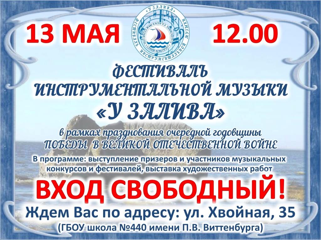 13 мая 2023 года, после трехлетнего перерыва школа принимала участников и гостей фестиваля инструментальной музыки «У залива». В рамках фестиваля Ткачук Оксаной Вадимовной была проведена экскурсия в музее школы. Большой интерес вызвал рассказ Оксаны Вадимовны и, бережно сохраняемые музейные экспонаты. Гости и участники фестиваля никак не хотели покидать музей и отпускать своего экскурсовода, но пришлось.