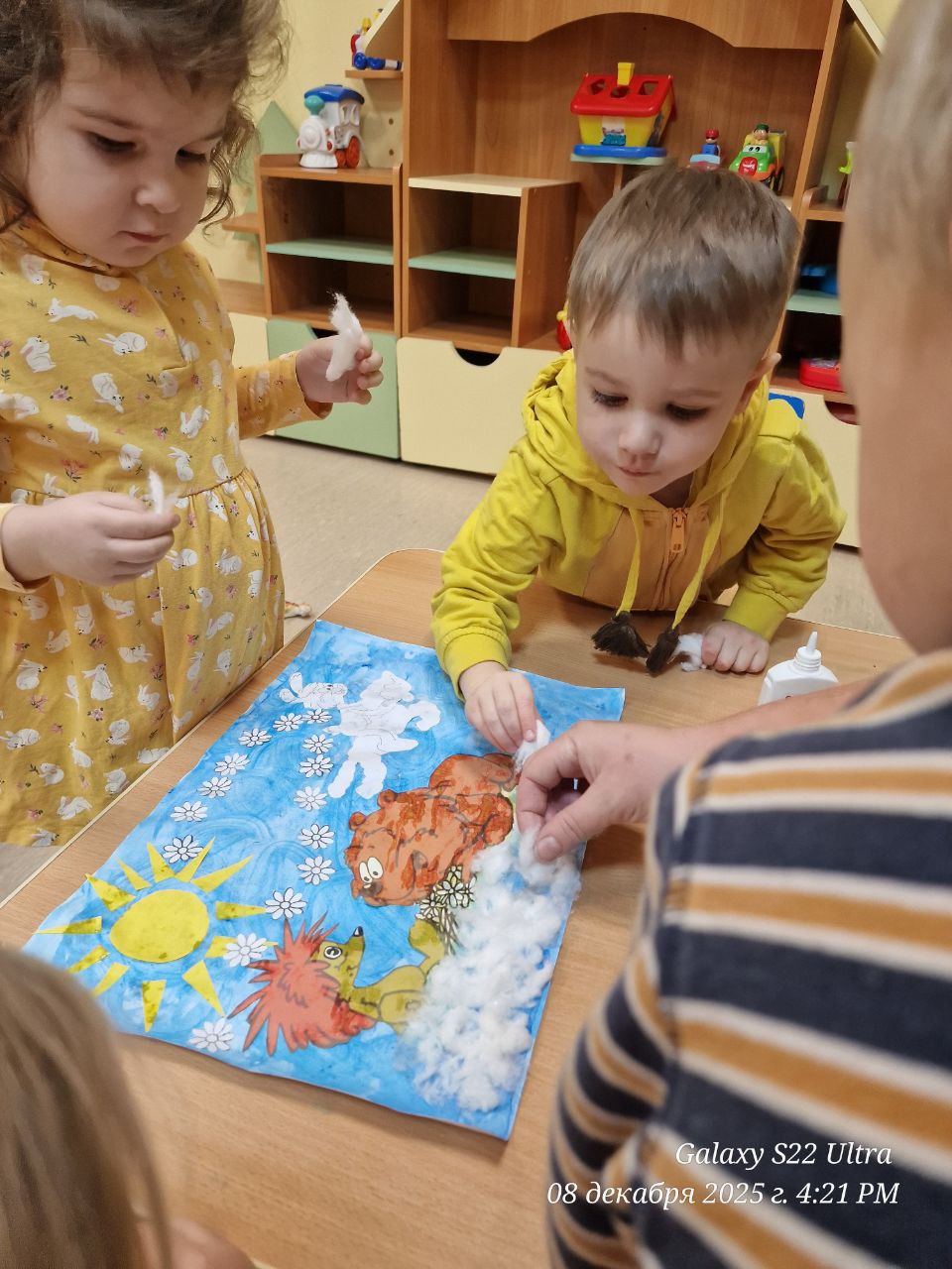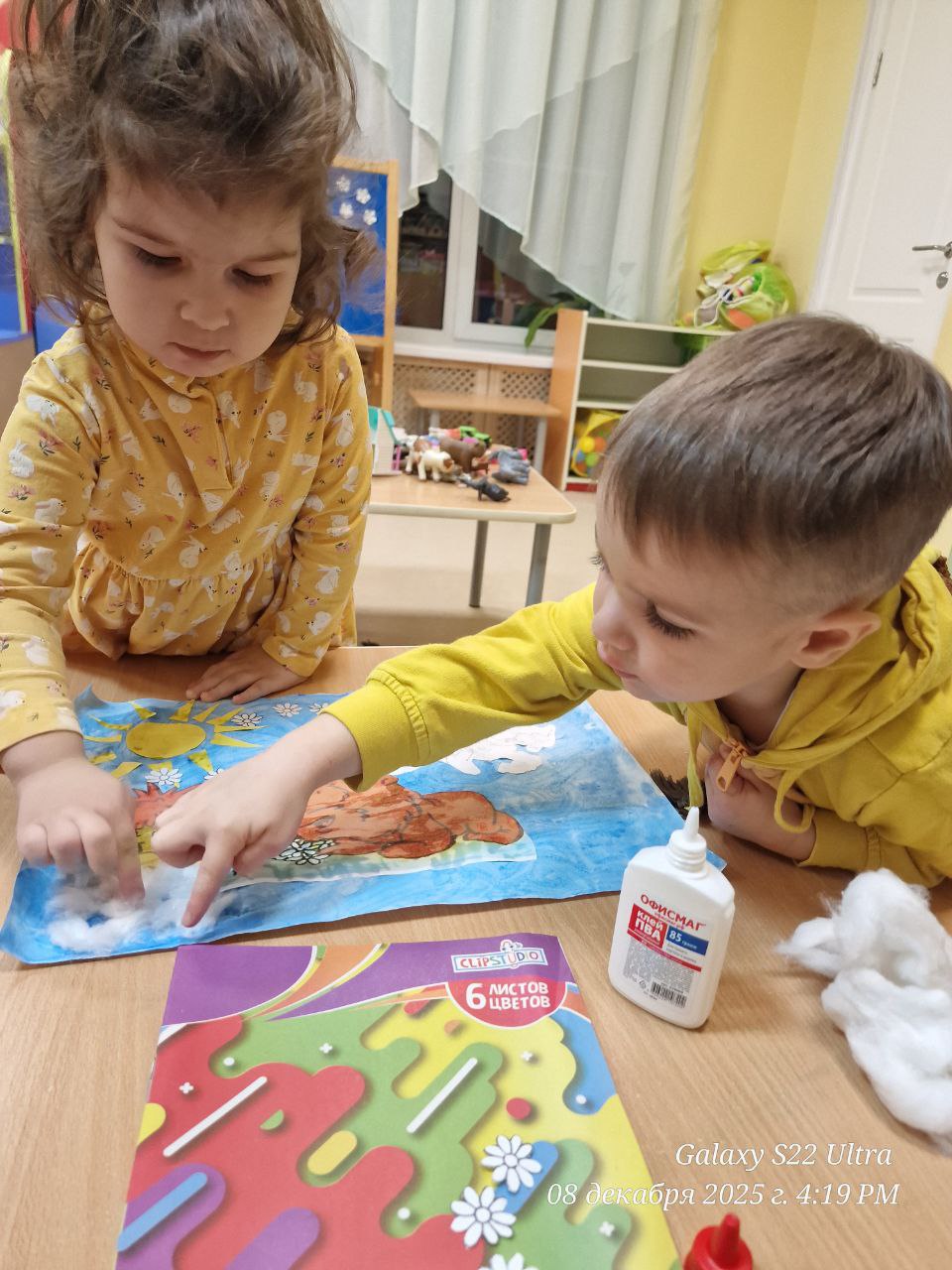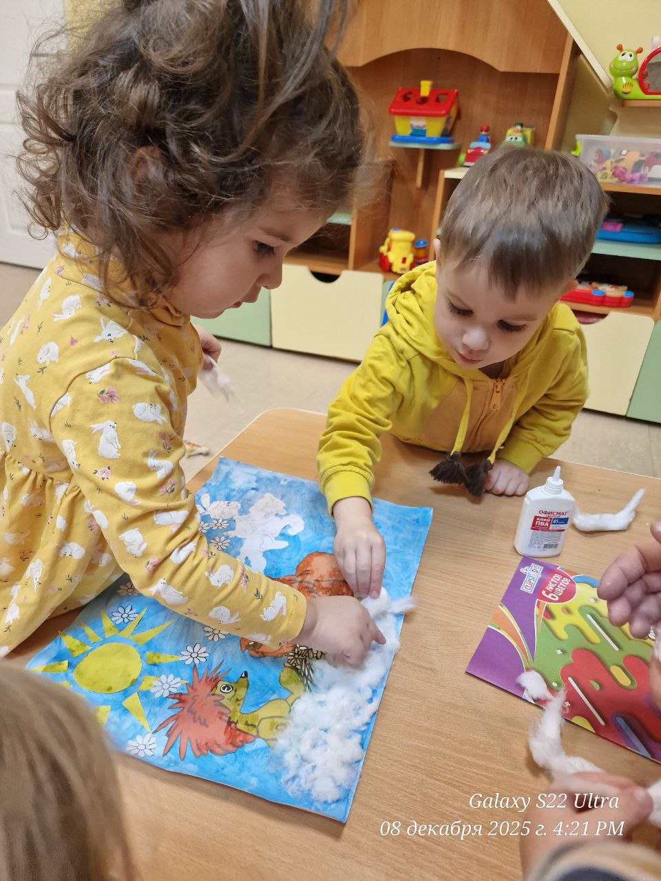 В группе раннего возраста малыши подготовили коллективную работу для музыкальной гостиной в холле детского сада,, облака белогривые лошадки". Ребята очень старались и получили огромное удовольствие от проделанной работы.