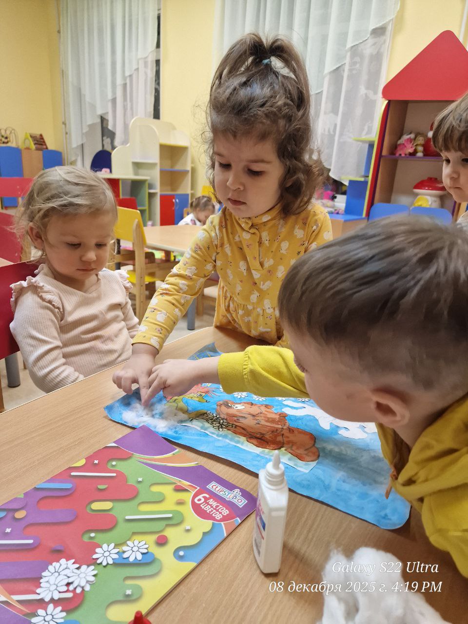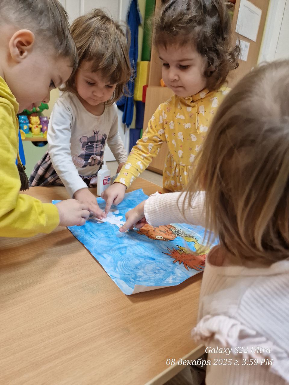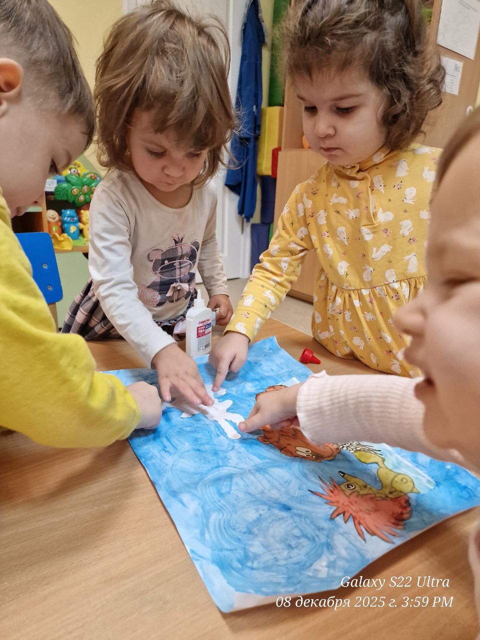 В группе раннего возраста малыши подготовили коллективную работу для музыкальной гостиной в холле детского сада,, облака белогривые лошадки". Ребята очень старались и получили огромное удовольствие от проделанной работы.