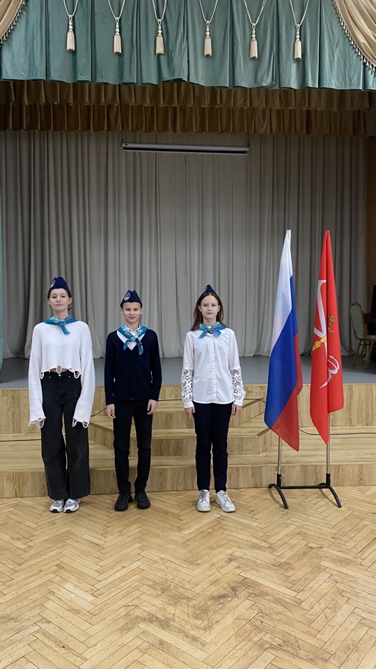 🇷🇺 Право вынести флаг Российской Федерации удостоились ученики 8А класса: Сорокина Алиса, Бугаев Егор, Москвитина София. На линейке присутствовали ученики 6-х классов. После окончания официальной части ученики разошлись по классам на урок "Разговор о важном".