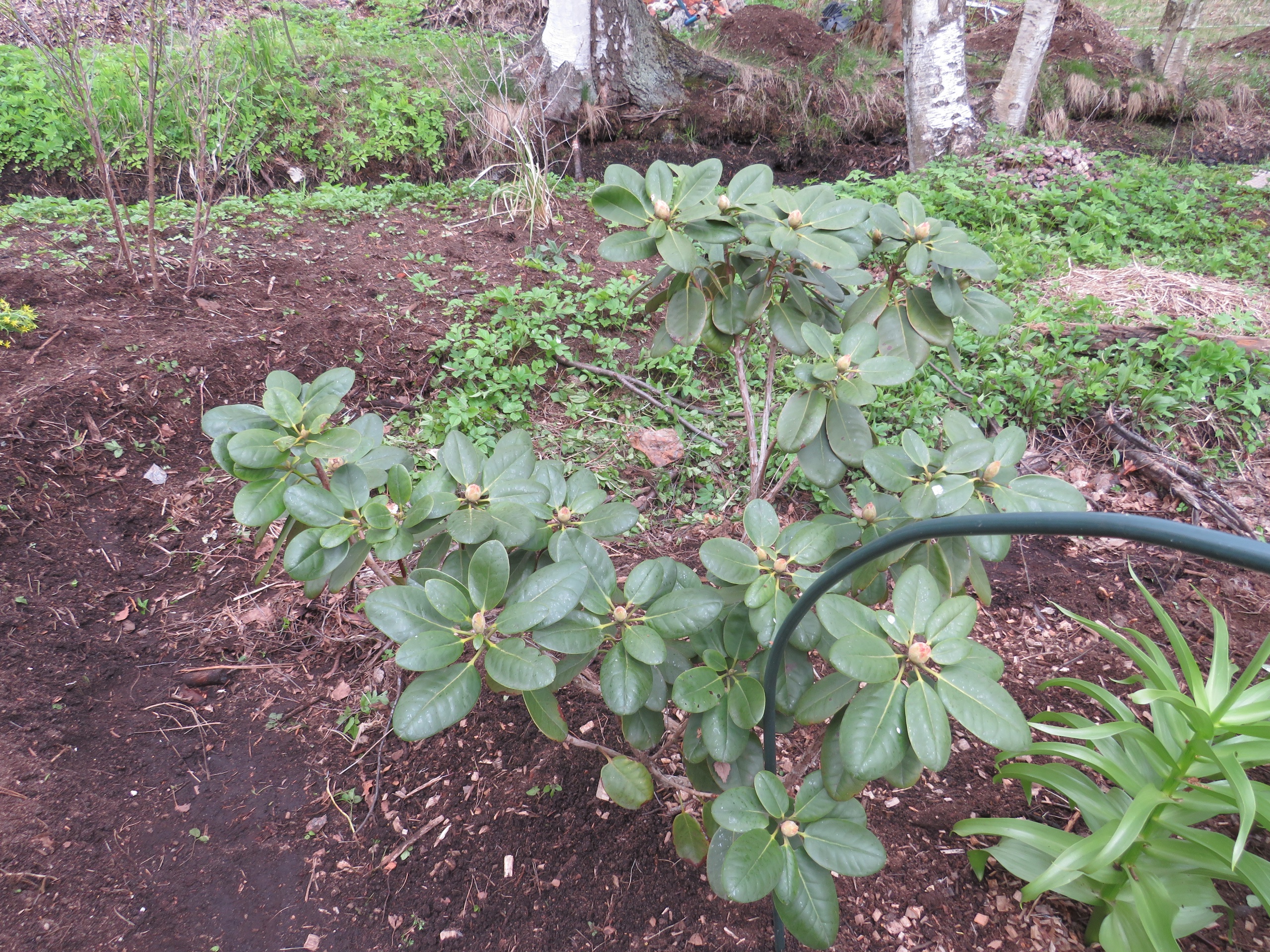 Отцвели настоящие подснежники, пролеска и чистяк. Настала пора бадана ,гусиного лука, барвинка и нарциссов. За ними торопятся показать себя во всей красе рябчики императорские и суворовский лук. Уверенно расправил свои листья рябинник рябинолистный, кружевными манжетами поднимаются над темной весенней землей акониты,набирают силу проростки лилий, готовится зацвести черемша. Зеленовато-белыми пиками пронзают почву хосты, выбираясь из тьмы к свету в стремлении поскорее развернуть шапки листьев. Каштаны пока грустят без настоящего летнего тепла,а папоротники страусники приготовились к раскручиванию улиток своих ваий. Благополучно пережили зиму стефанандры и актинидия коломикта,неспешно раскрывают почки канадские дубы. А вот лимонник китайский и азиатские цветки тролля заявили своим внешним видом на право лучших условий жизни. Из вечнозеленых рододендронов бледно-жёлтый, надо надеяться, раскроет свои цветочные почки уже этим летом
