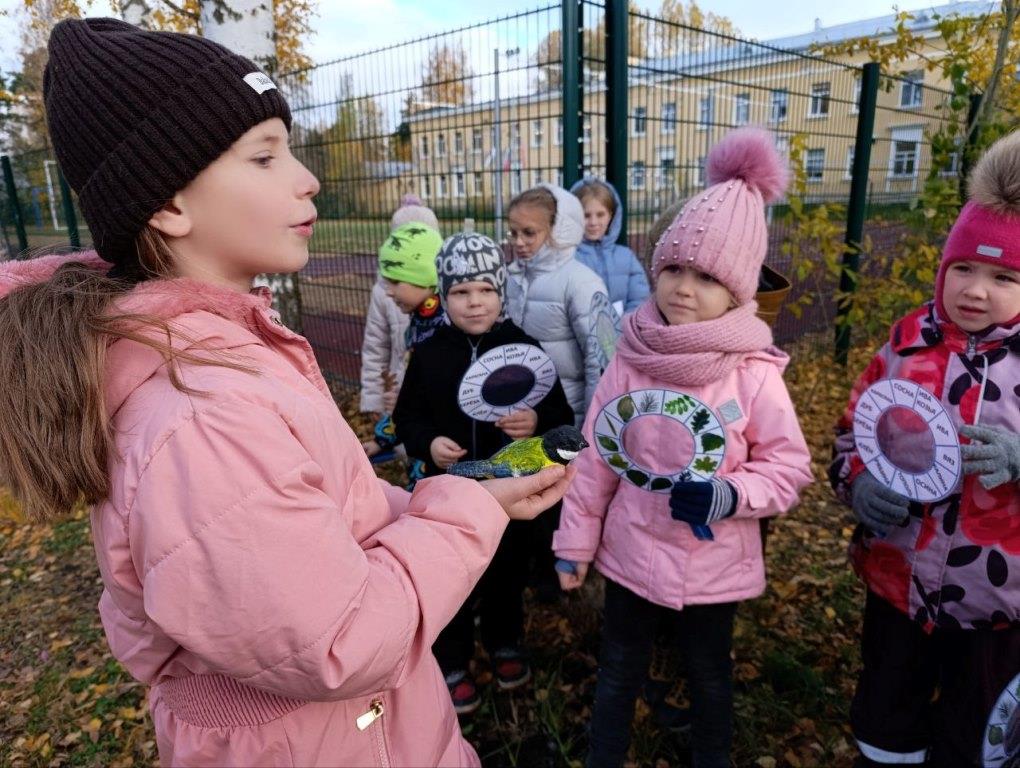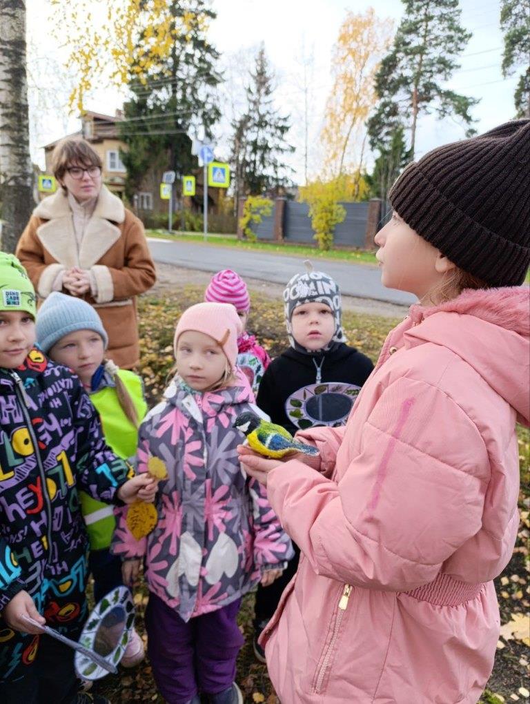 Ученики нашей школы провели экскурсию «Синичкина экотропа» для ребят подготовительной группы «Умнички» . Гидами выступили (и справились блестяще) учащиеся и сама синичка!