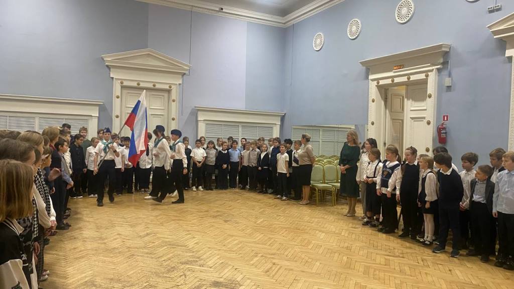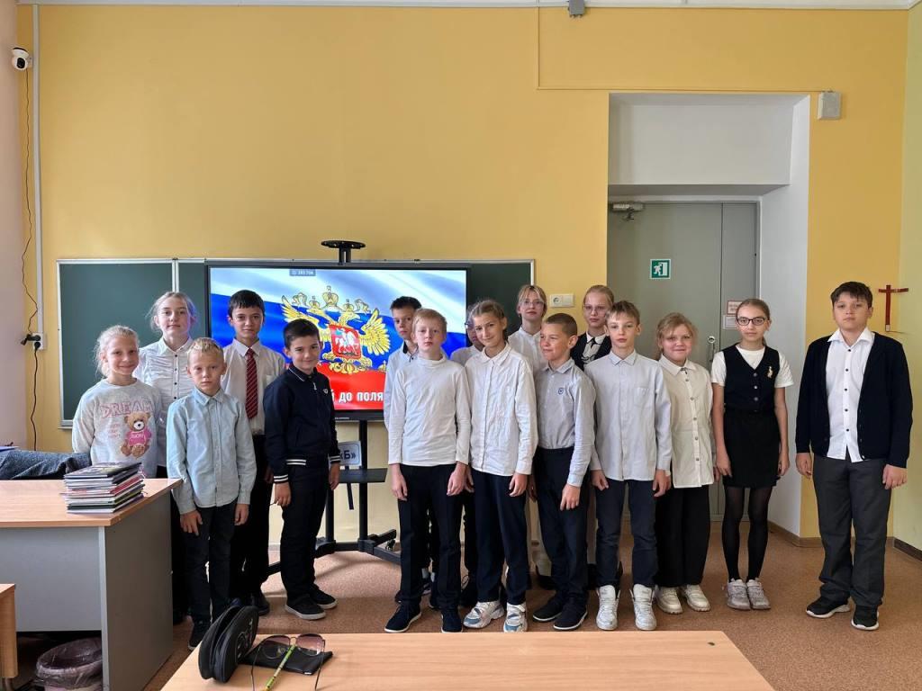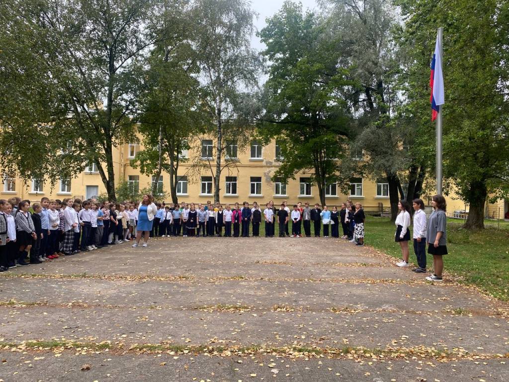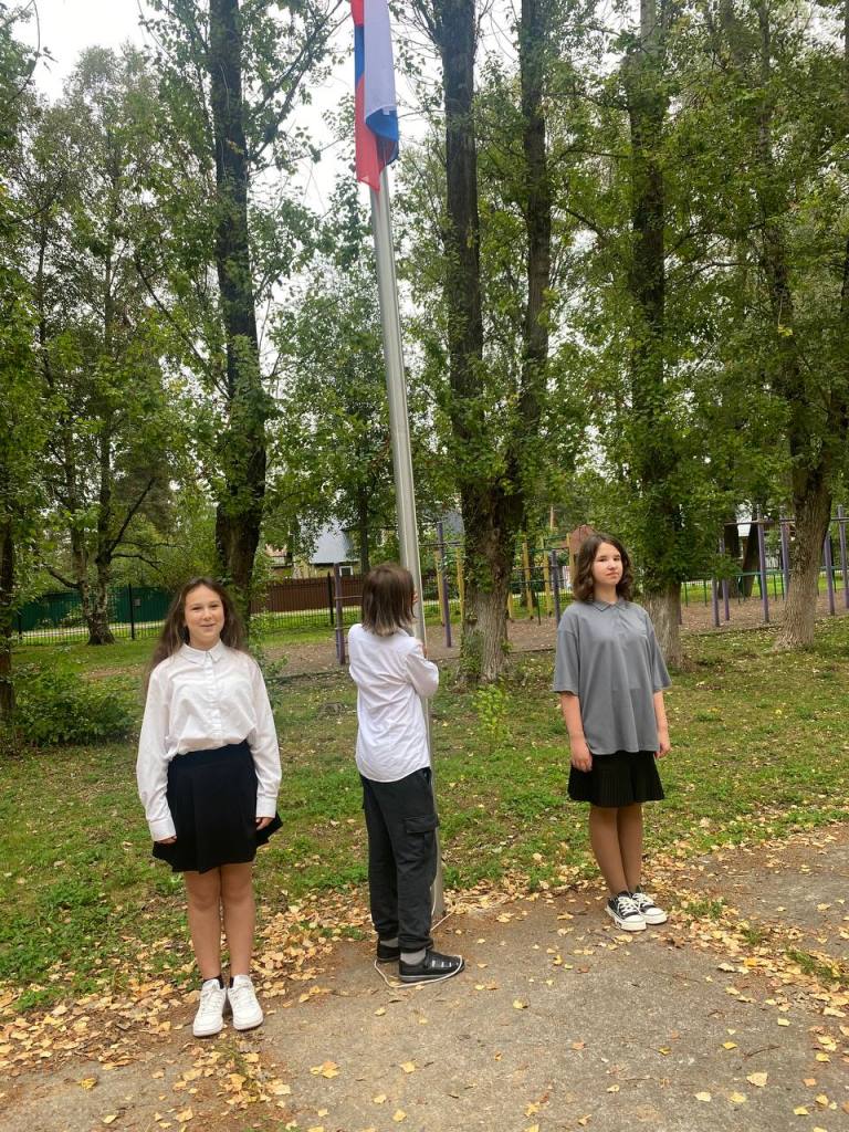 Право вынести флаг Российской Федерации удостоились ученики 7А класса: Морозов Владислав, Ванькина Таисия, Россинский Владислав. На линейке присутствовали ученики 3-х и 4-х классов. После окончания официальной части ученики разошлись по классам на урок "Разговор о важном".