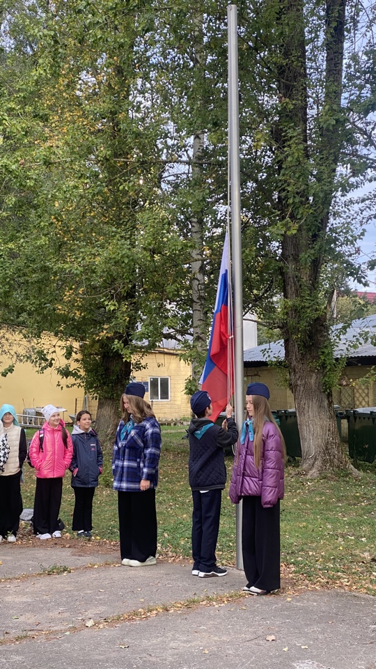 🇷🇺 Право вынести флаг Российской Федерации удостоились ученики 7А класса: Россинский Владислав, Скобликова Милана, Ванькина Таисия. На линейке присутствовали ученики 5 классов. После окончания официальной части ученики разошлись по классам на урок "Разговор о важном".