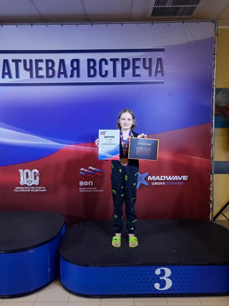 1. 3-е место на дистанции 200 метров комплексное плавание (бассейн 50 метров);