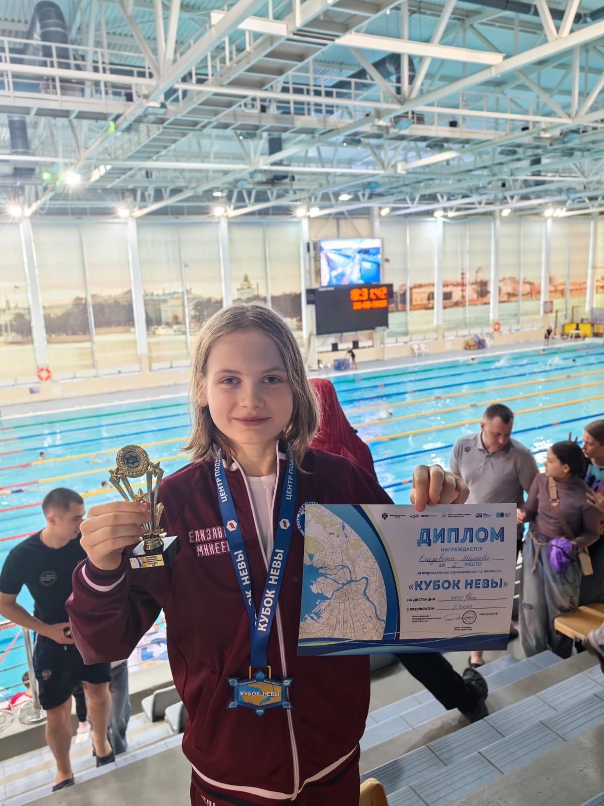 4. 1-е место и обладатель "Кубка Невы" на дистанции 400 метров вольный стиль (бассейн 50 метров).