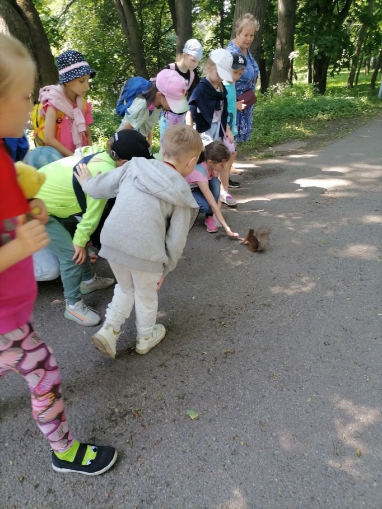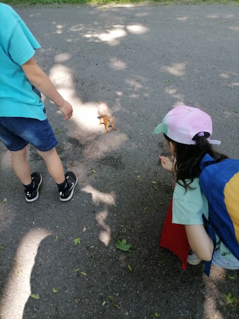 Затем ребята прошлись по живописными аллеям, полюбовались птицами и шустрыми белками.