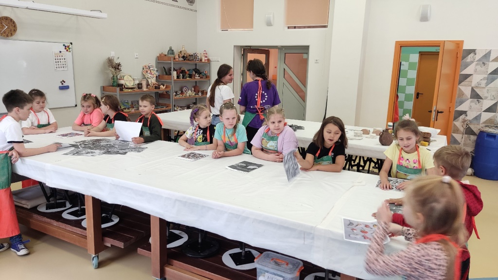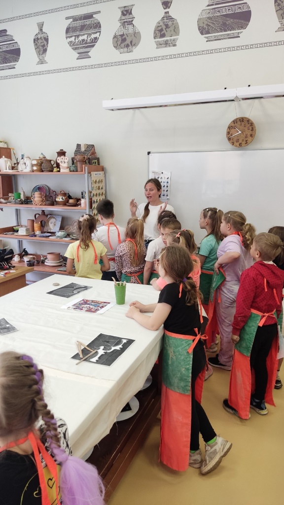 В гончарной мастерской детям рассказали, что глина является отличным материалом для изготовления поделок своими руками и, будучи материалом пластичным, используется практически во всех сферах и областях жизни человека. Затем учащиеся приступили к практическому воплощению своих фантазий.