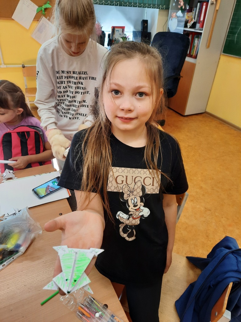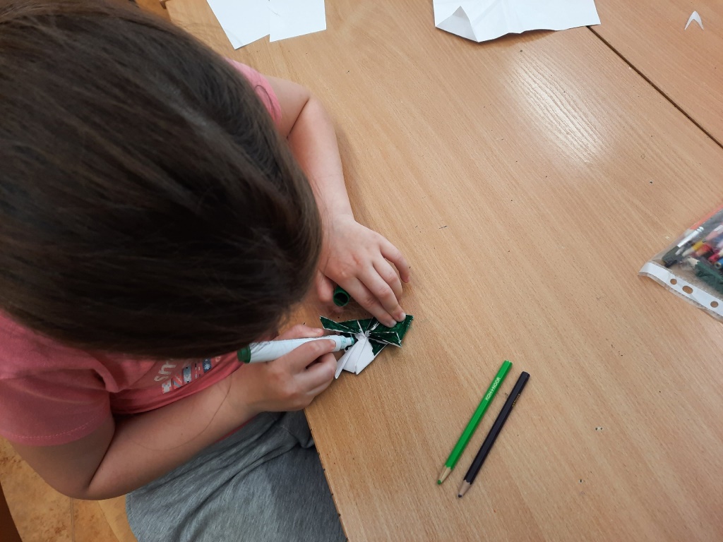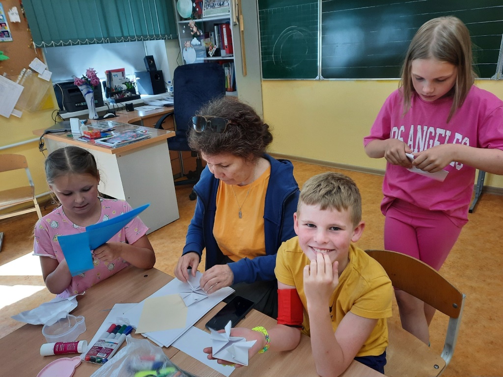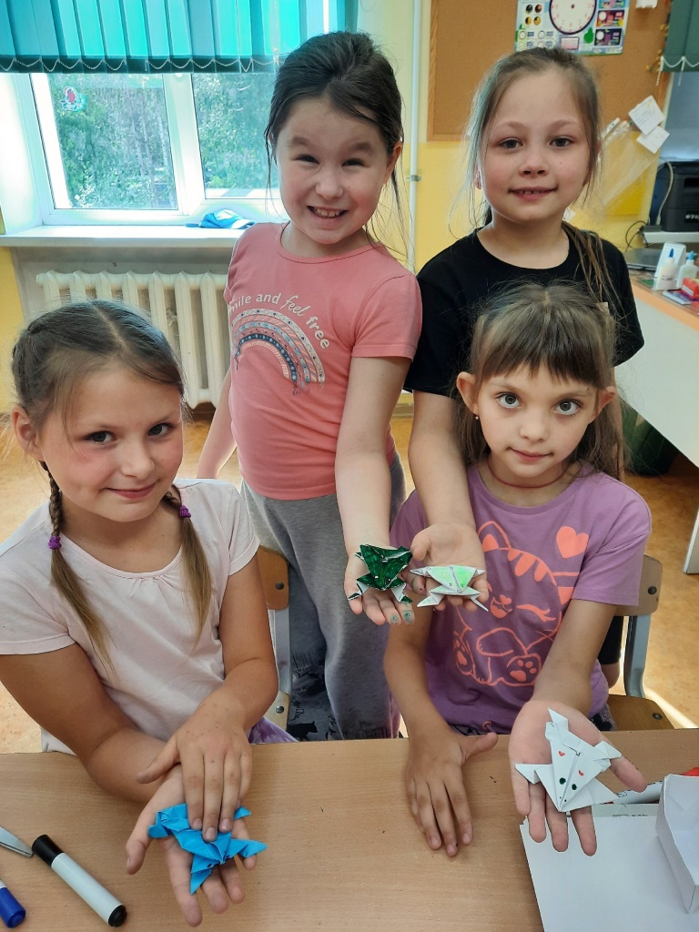Дети с удовольствием изготовили каждый свою игрушку. Яркие разноцветные фигурки из бумаги, созданные своими руками, привели учеников в восторг. В завершении занятия ребята устроили соревнование, чья «лягушка» подпрыгнет выше, а некоторые лягушки даже делали сальто!