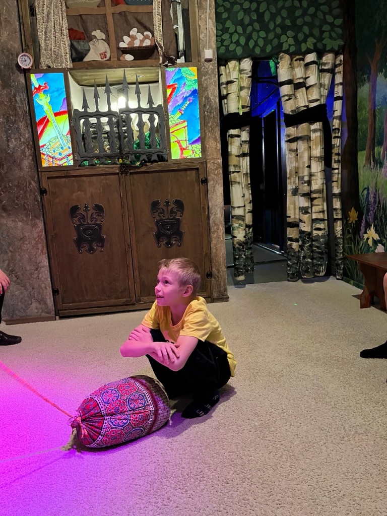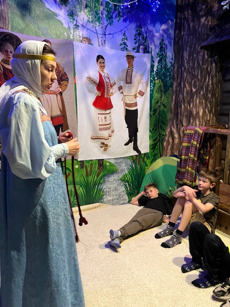 С помощью сказочных персонажей в исполнении актёров из детских театров Петербурга ребята раскрыли тайну рождения народных былин и сказок, взаимодействуя с волшебными экспонатами, прикасаясь через предметы быта к истории Древней Руси.