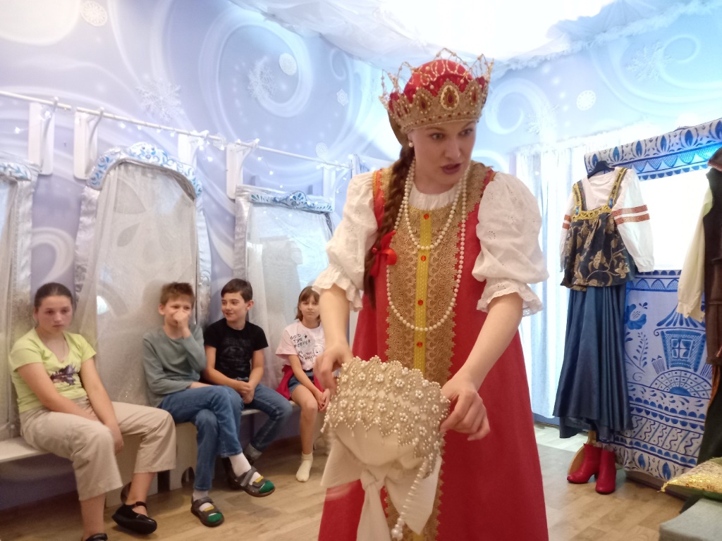 Ребята познакомились с экспозициями музея, не просто гуляя по залам, а принимая активное участие в театрализованном представлении – они узнали об истории сказки изнутри, становясь её героями.