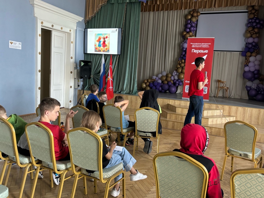 Волонтеры провели для ребят беседу «Будь в движении», направленную на закрепление представлений о направлениях деятельности Движения Первых, рассказали об истории появления движения, его ценностях и целях развития.
