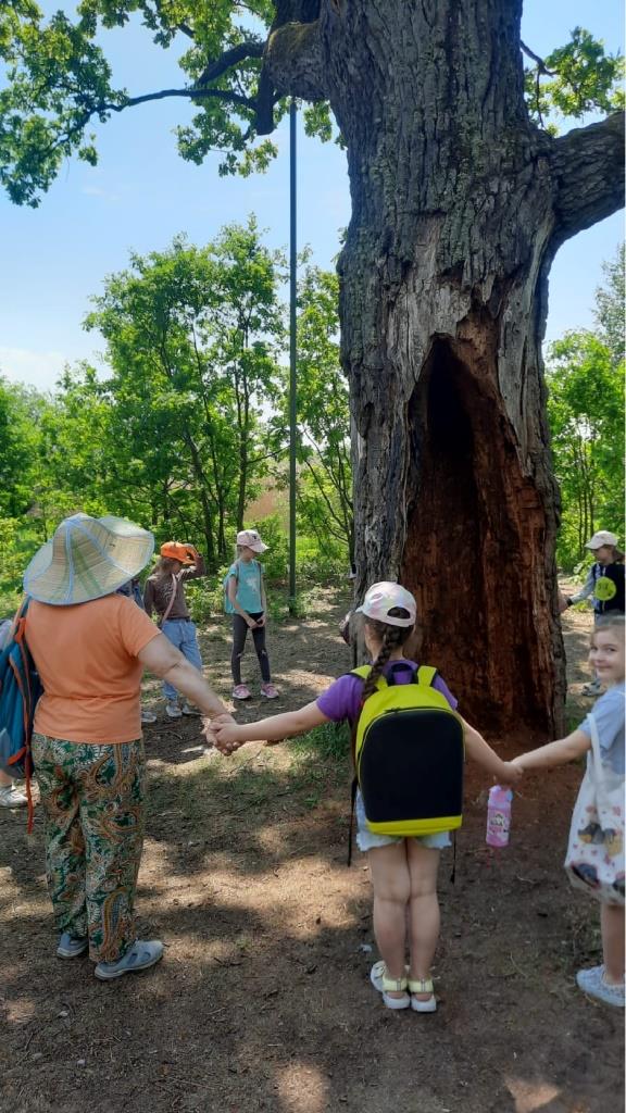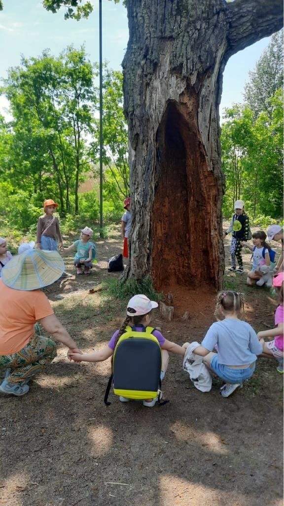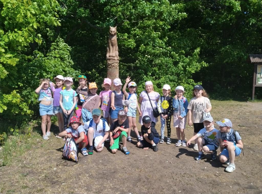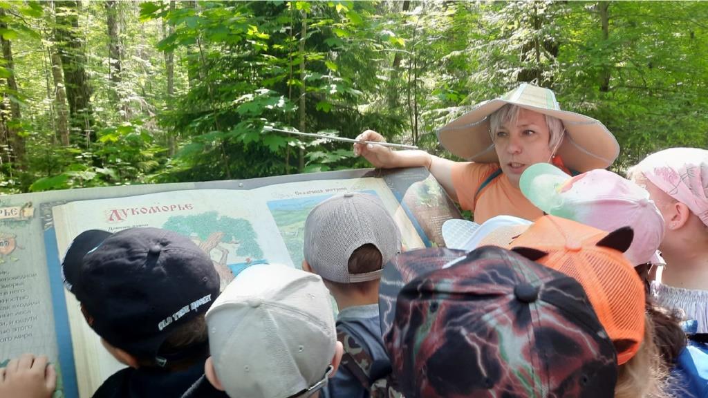 «Волшебный лес «У Лукоморья» встретил нас загадками. Сначала мы искали зверей и птиц на афише, а потом разгадывали загадки волшебных книг. Конечно, хотелось увидеть Лешего, Русалок, Водяного. Но сегодня они выходные. С нами была сопровождающей только Баба Яга. По дороге мы икали разные деревья, фотографировали ландыши, слушали птичек, старались вести себя тихо-тихо, чтобы не тревожить птенчиков. У самого синего моря нас встретил кот Баюн, скорее всего, ученый. Дуб стоял рядом. Древний дуб, который помнит самого императора Петра I. Синее море было спокойно. Мы очень рады побывать у Лукоморья. Кстати, на прогулке мы выучили несколько новых слов из волшебных книг».
