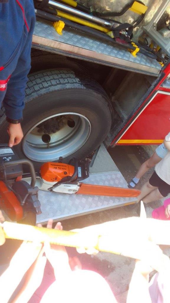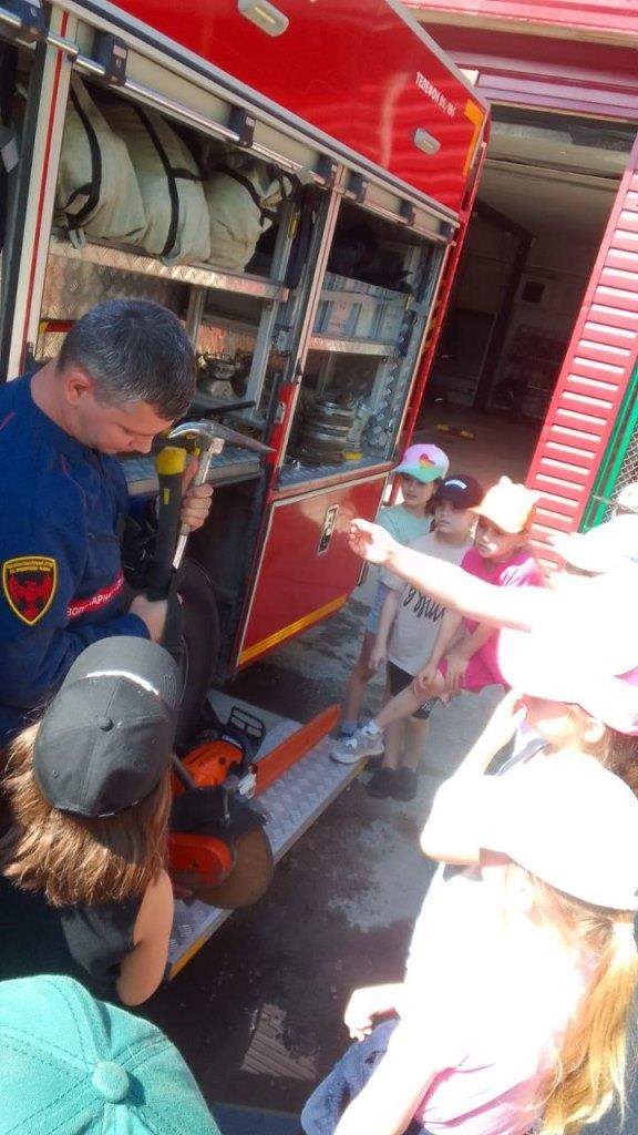Сотрудники приветливо встретили ребят и ознакомили с пожарно-техническим вооружением пожарной части. Они рассказали о пожарной технике и показали детям, как и чем оборудованы машины, для чего служит тот или иной предмет из многочисленного пожарно-технического вооружения. Специально для юных гостей сотрудники учреждения разрешили ребятам подняться в машины, ощутить себя юными пожарными. С огромным желанием и восхищением дети рассматривали пожарные машины, аварийно – спасательное оборудование. Ребятам показали пожарные рукава и другие, столь нужные спасателям инструменты на пожаре, рассказали об их назначении.