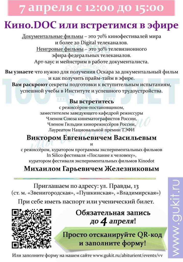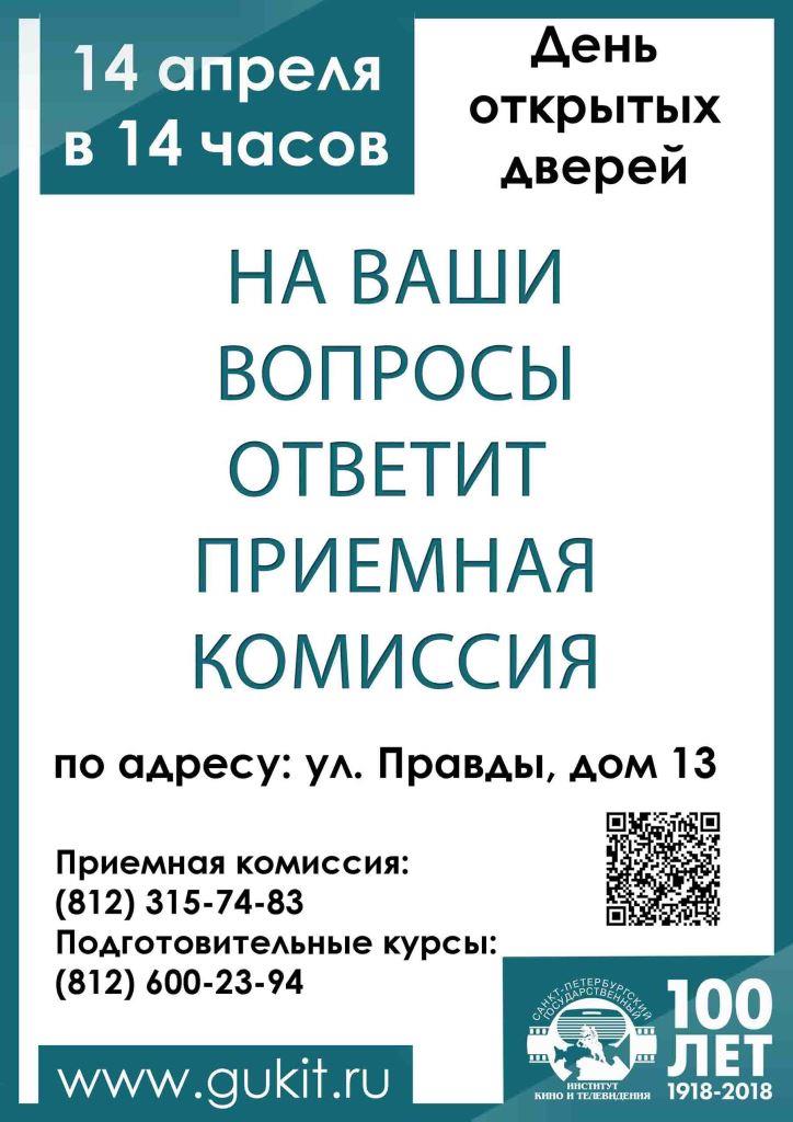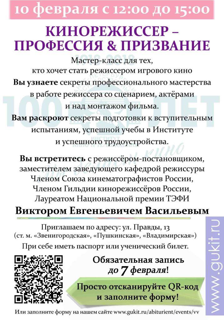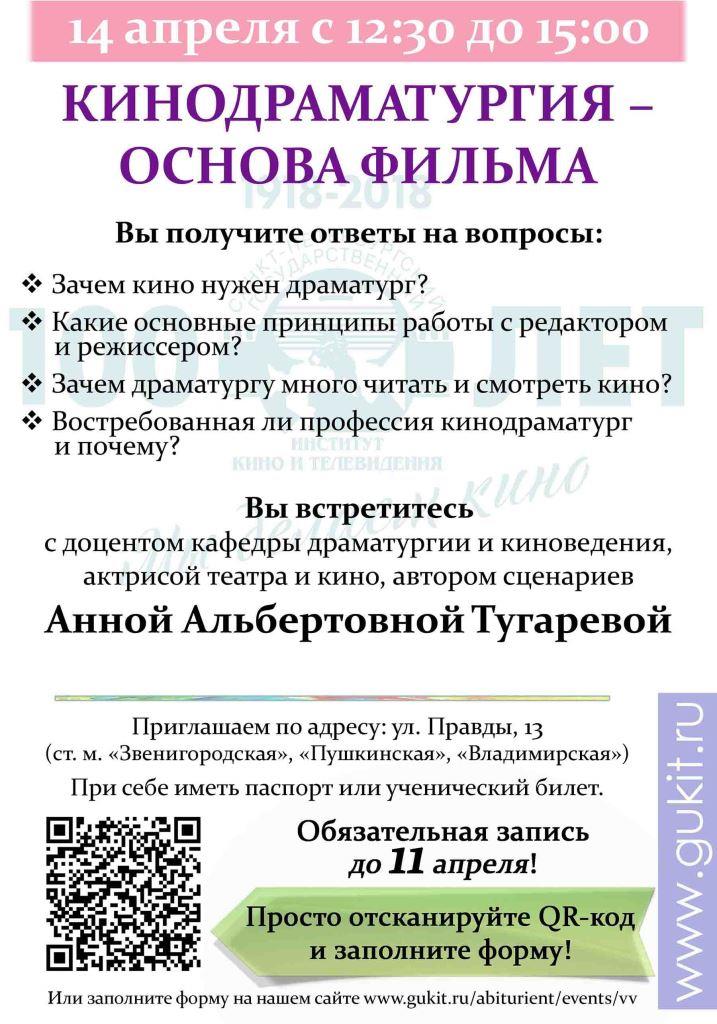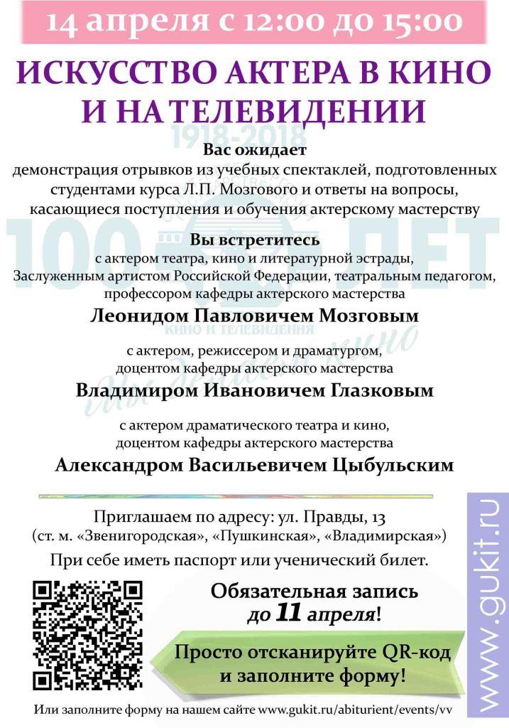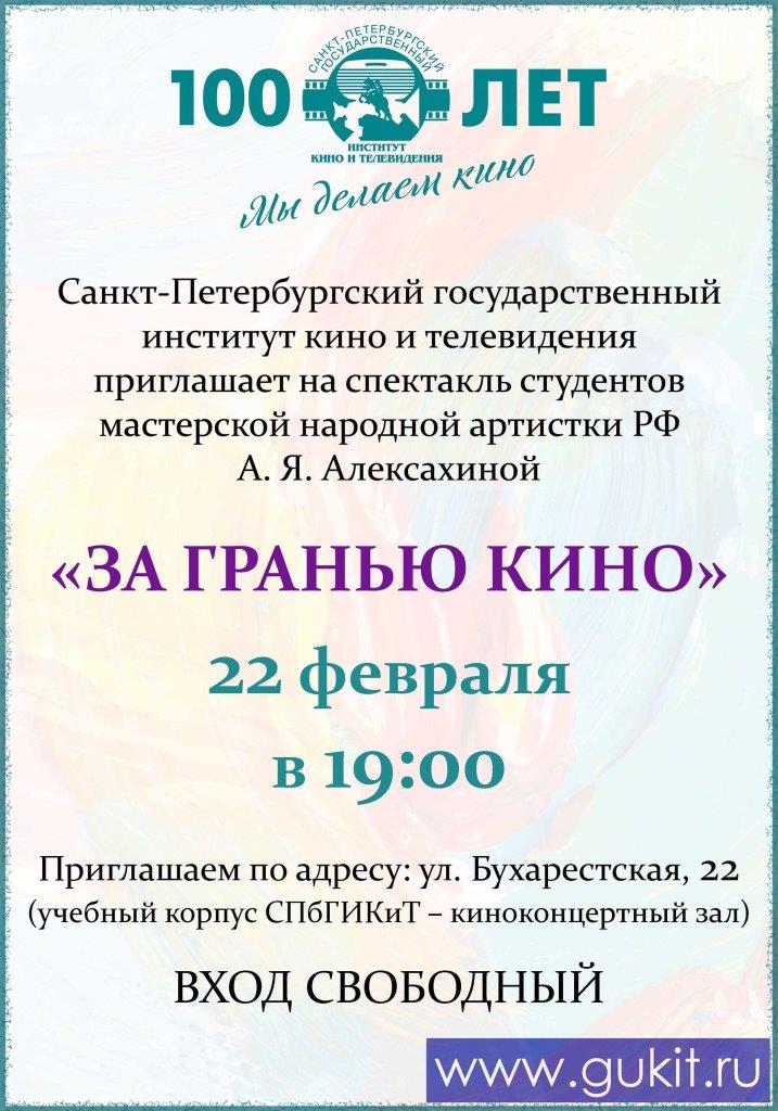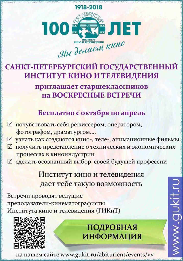 Санкт-Петербургский государственный институт кино и телевидения приглашает абитуриентов на спектакль студентов мастерской Е.Р. Ганелина и на Воскресные встречи!