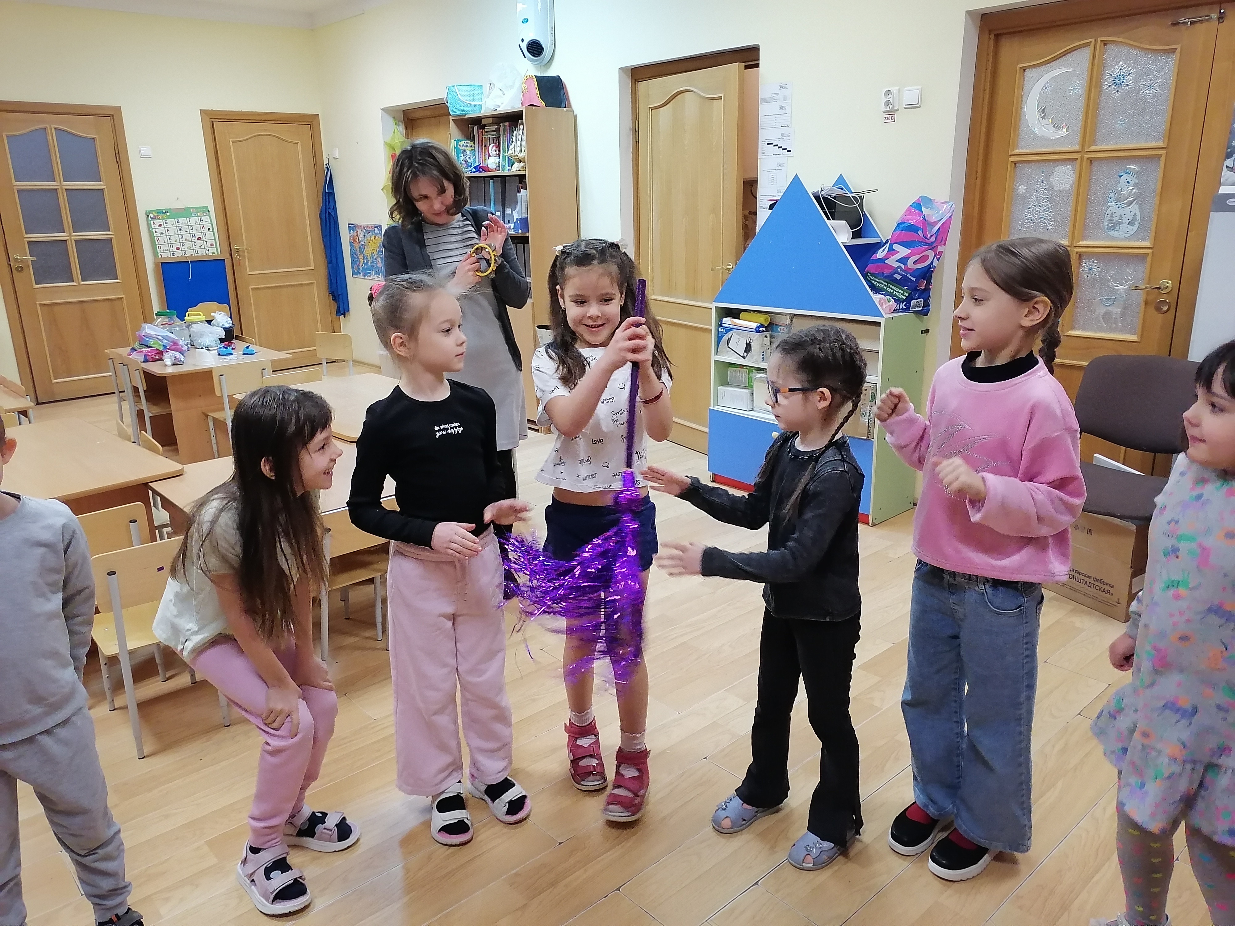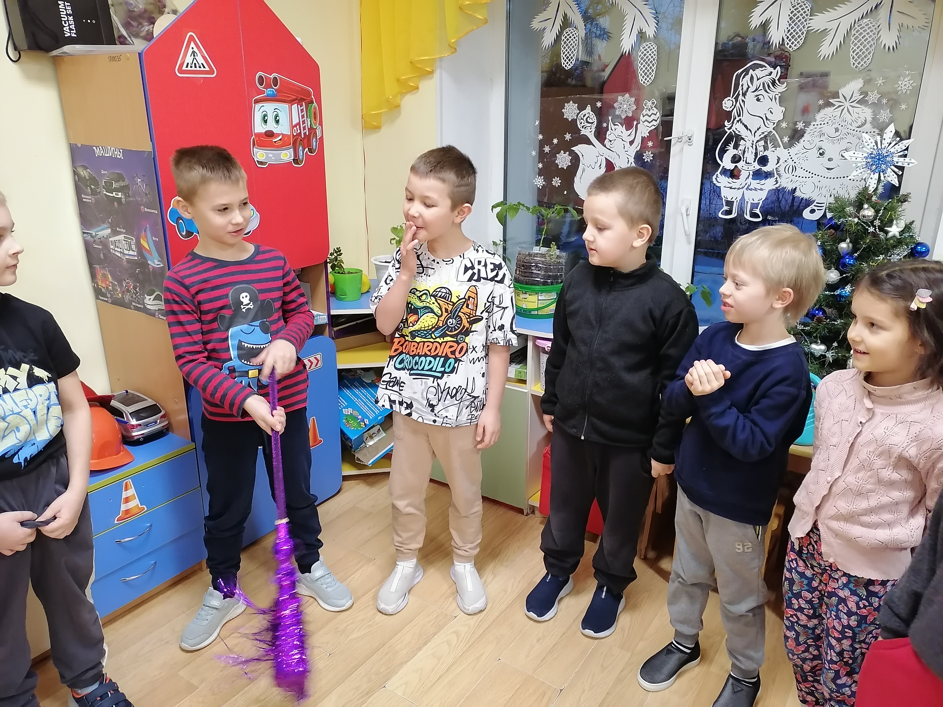 Занятие началось с обсуждения зимы. Воспитатель рассказал о том, как зимой меняется природа: деревья покрываются снегом, появляются снежинки и морозные узоры. Дети активно делились своими впечатлениями о зимних прогулках и играх на улице.