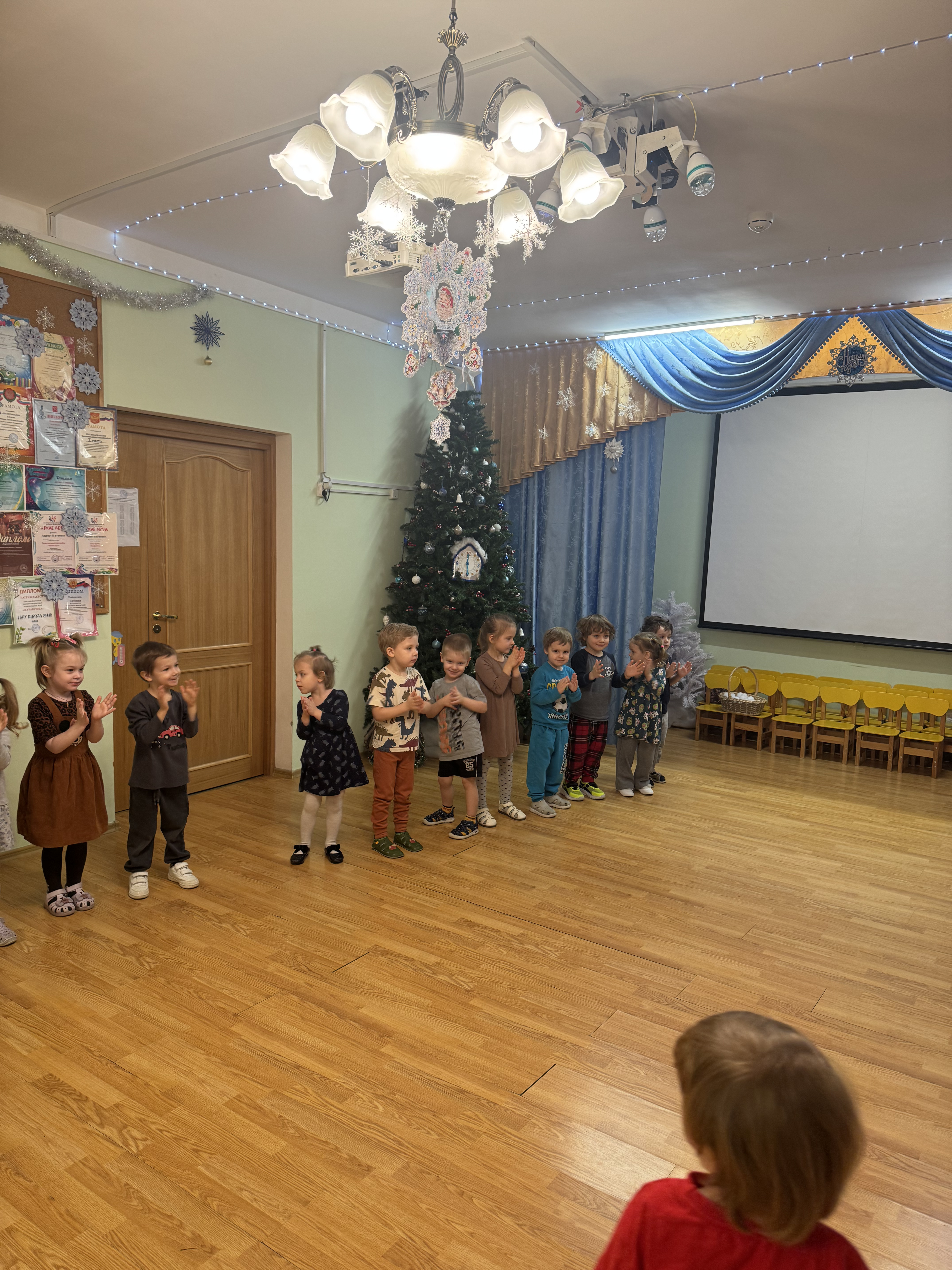 На музыкальном занятии дети веселились у новогодней елки🎄: были танцы, песни, игры и загадки. А в конце праздника ёлочка погасила свои огоньки… 🎄✨️