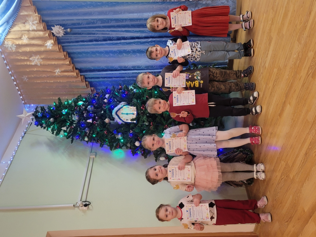 В средней группе "Почемучки" на тематическом музыкальном занятии прошло награждение ребят, принимавших участие в совместной с родителями новогодней выставке детских рисунков и поделок.