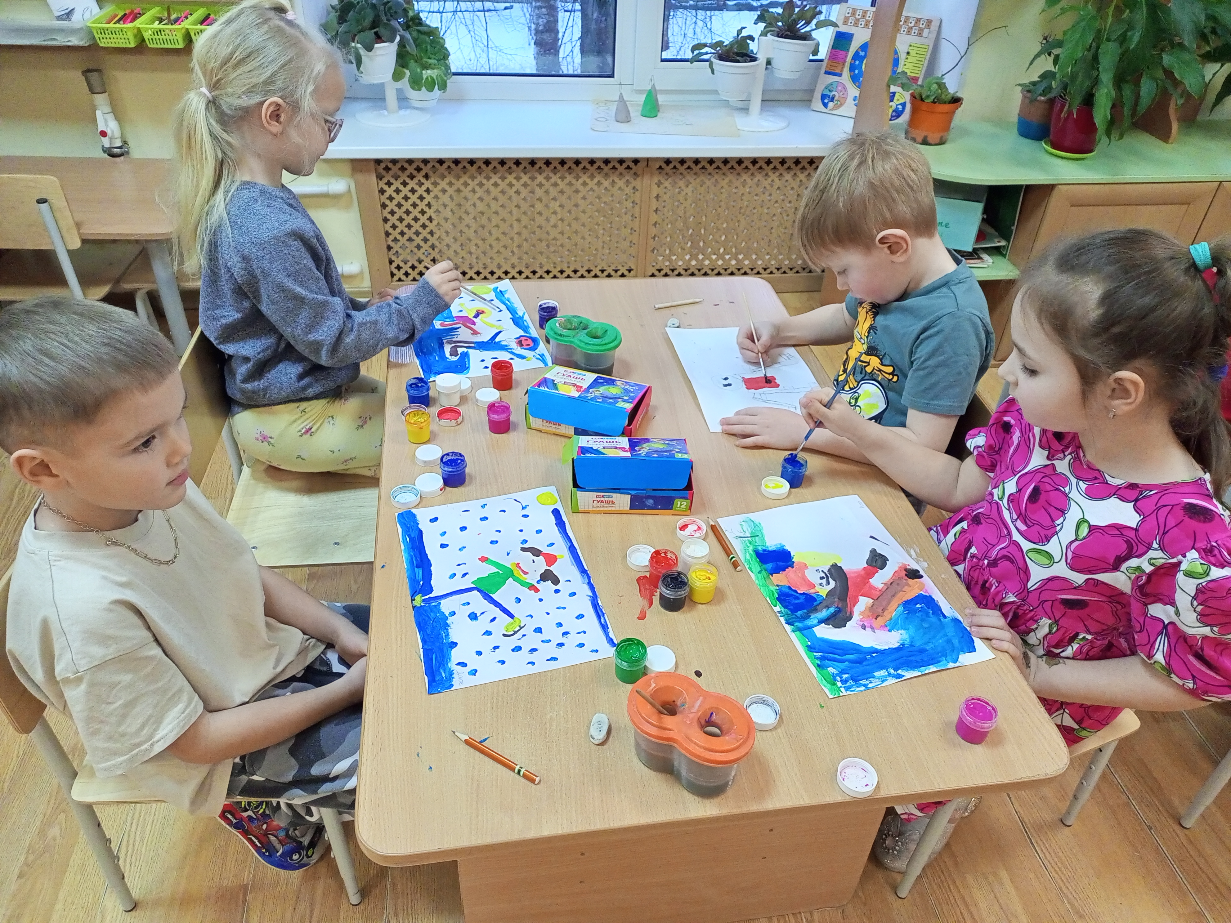 Занятие началось с обсуждения зимних видов спорта. Далее ребята посмотрели презентацию о различных видах спорта, их правилах и особенностях. Дети активно делились своими знаниями и впечатлениями от увиденных спортивных состязаниях. Затем ребята приступили к рисованию своих любимых зимних видов спорта. Некоторые дети изобразили фигуристов в красивых костюмах на льду, другие нарисовали спортсменов на лыжах или веселых сноубордистов.