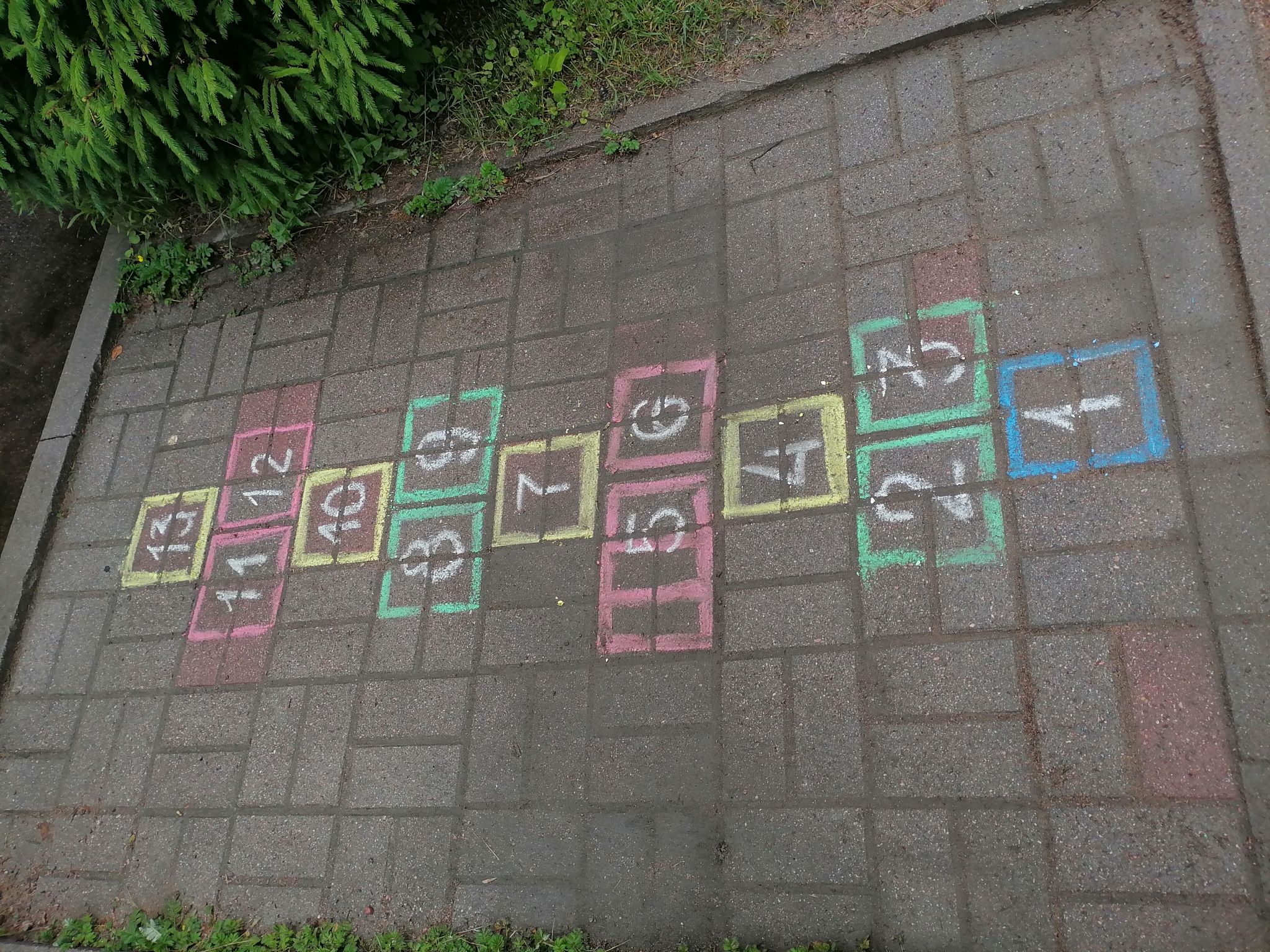 Варианты игры в, классики, великое множество, классики для 3-4 летних малышей, они должны быть небольшими, чтобы маленькие детские ножки смогли легко совершать прыжки и даже переходить из одного сектора в другой. Покажите малышу, как нужно прыгать из одного квадрата в другой, стараясь не наступить на линию. Пусть сначала кроха играет двумя ногами. Для большего веселья посадите в последнюю клеточку игрушку, которая заблудилась и её нужно выручить из беды. Совсем маленьким достаточно будет просто переступать через линии. По мере совершенствования, предложите крохе прыгать на одной ножке. Не забывайте тренировать как правую, так и левую ногу. Ещё можно дополнительно нарисовать в каждой клетке круг, следы. Задача малыша - попасть ножками точно в обозначенное место. Правила: игрок прыгает на 2 ногах (по мере усовершенствования навыков на 1), стараясь попадать на заранее нанесенные следы в классиках.