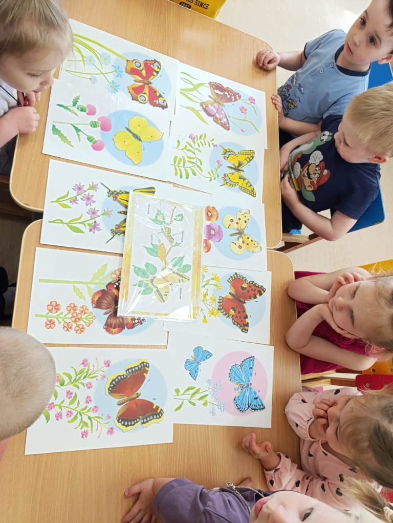 На прогулке поиграли в такие игры как: «Полетай как бабочка», «Каким цветом бабочка», "Найди пару".