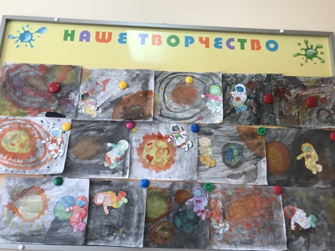 Для расширения кругозора в группе размещены иллюстрации и фотографии о Вселенной, космонавтах, спутниках и космических кораблях. В книжный уголок внесены энциклопедии и книги на данную тему. В беседах с воспитателями дети узнали о людях, которые проложили путь к звездам, о звездах, кометах, планетах больших и маленьких. Узнав так много нового, ребята не смогли не отобразить свои впечатления в игровой, конструктивной и творческой деятельности.