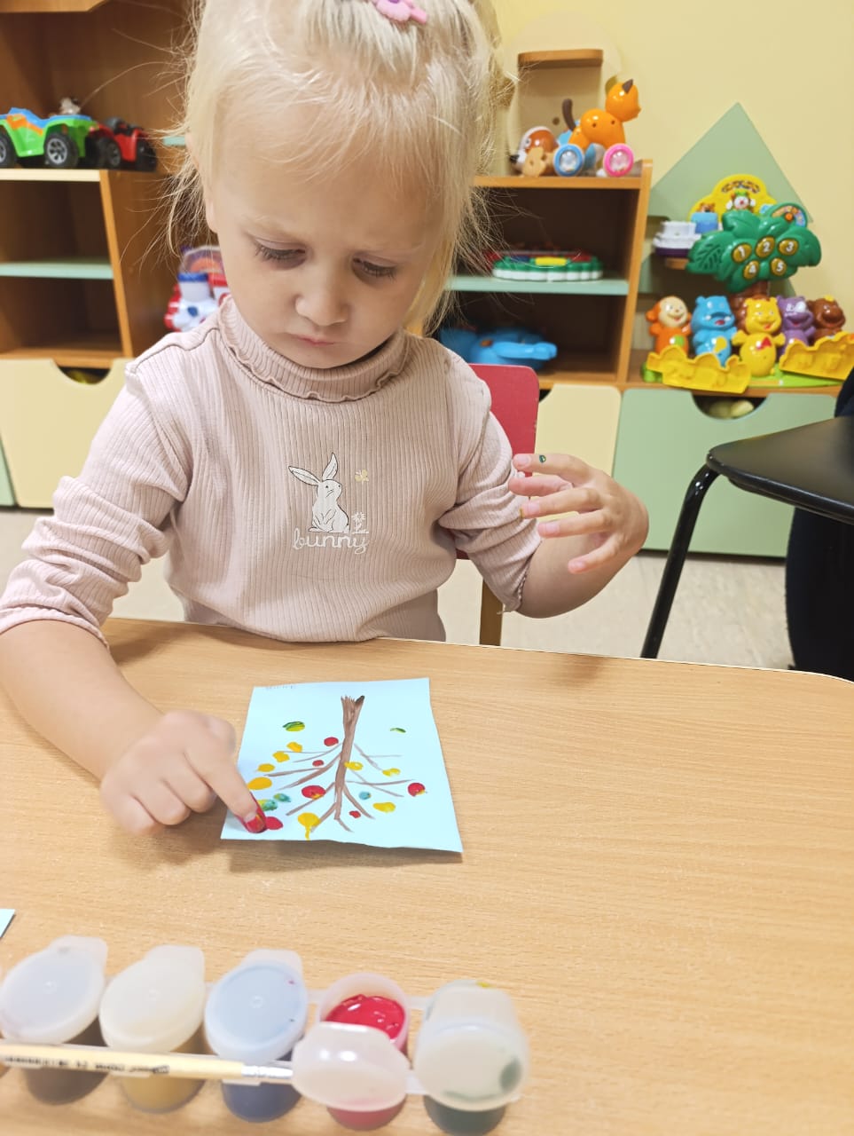В группе раннего возраста прошло увлекательное нетрадиционное рисование пальчиками "Осеннее дерево".