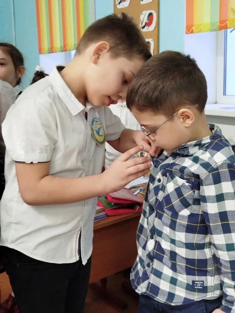 Ребята не просто изготовили броши, но и с особым трепетом вручили их ученикам 1А класса, рассказав им историю этого важного символа.