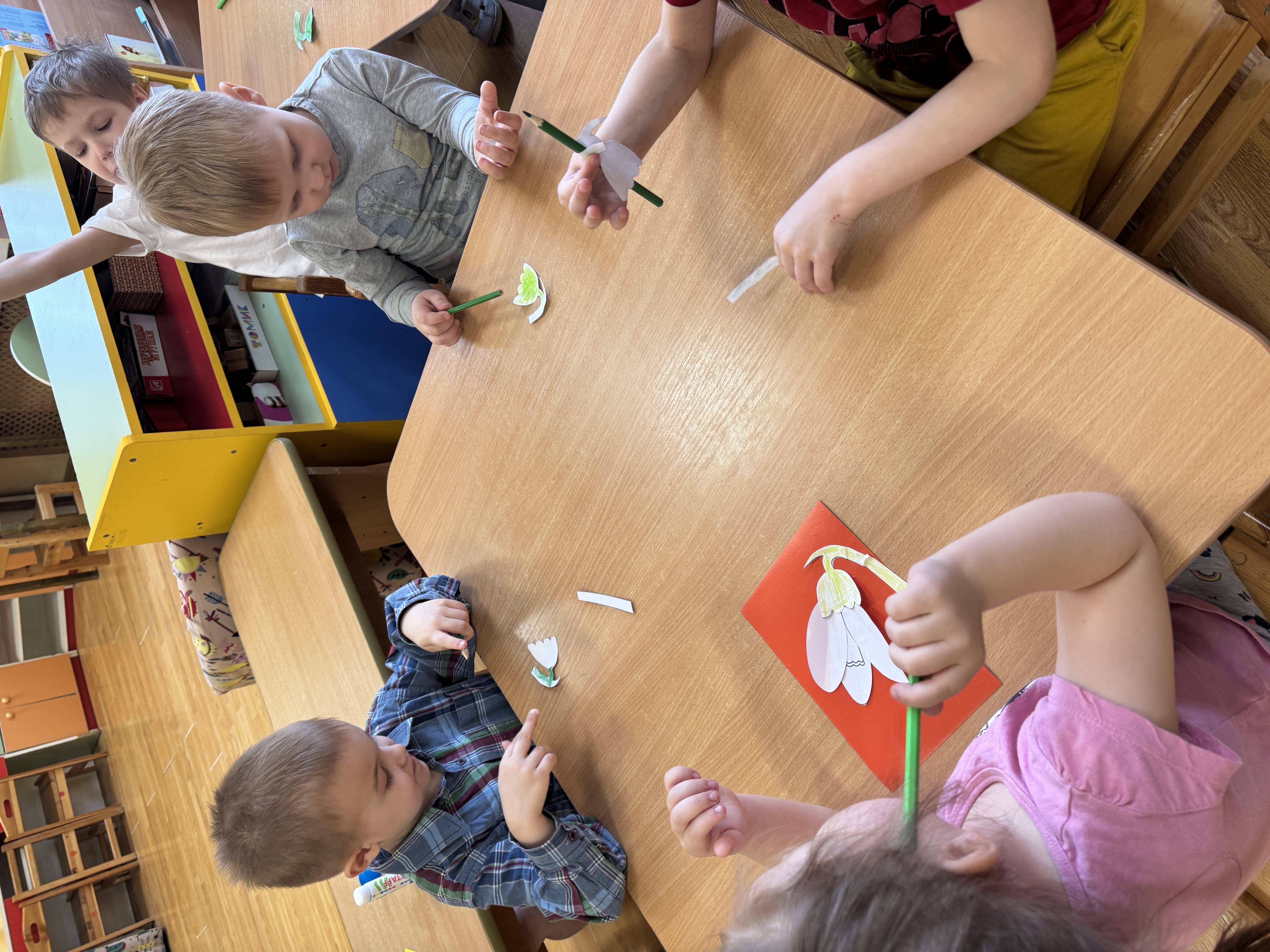 Дети обещали бережно относиться к природе, активно участвовать в деле защиты окружающей среды. Онипоняли, что лучше всего, когда подснежники радуют глаз на лесных полянках. А чтобы создать в группах весеннее праздничное настроение, ребята совместно с воспитателем сделали весеннюю аппликацию «Подснежник», внеся, таким образом, свой маленький вклад в сохранение видового многообразия на нашей Земле. Ведь для того, чтобы подарить цветок подснежника, совсем необязательно срывать его в лесу.
