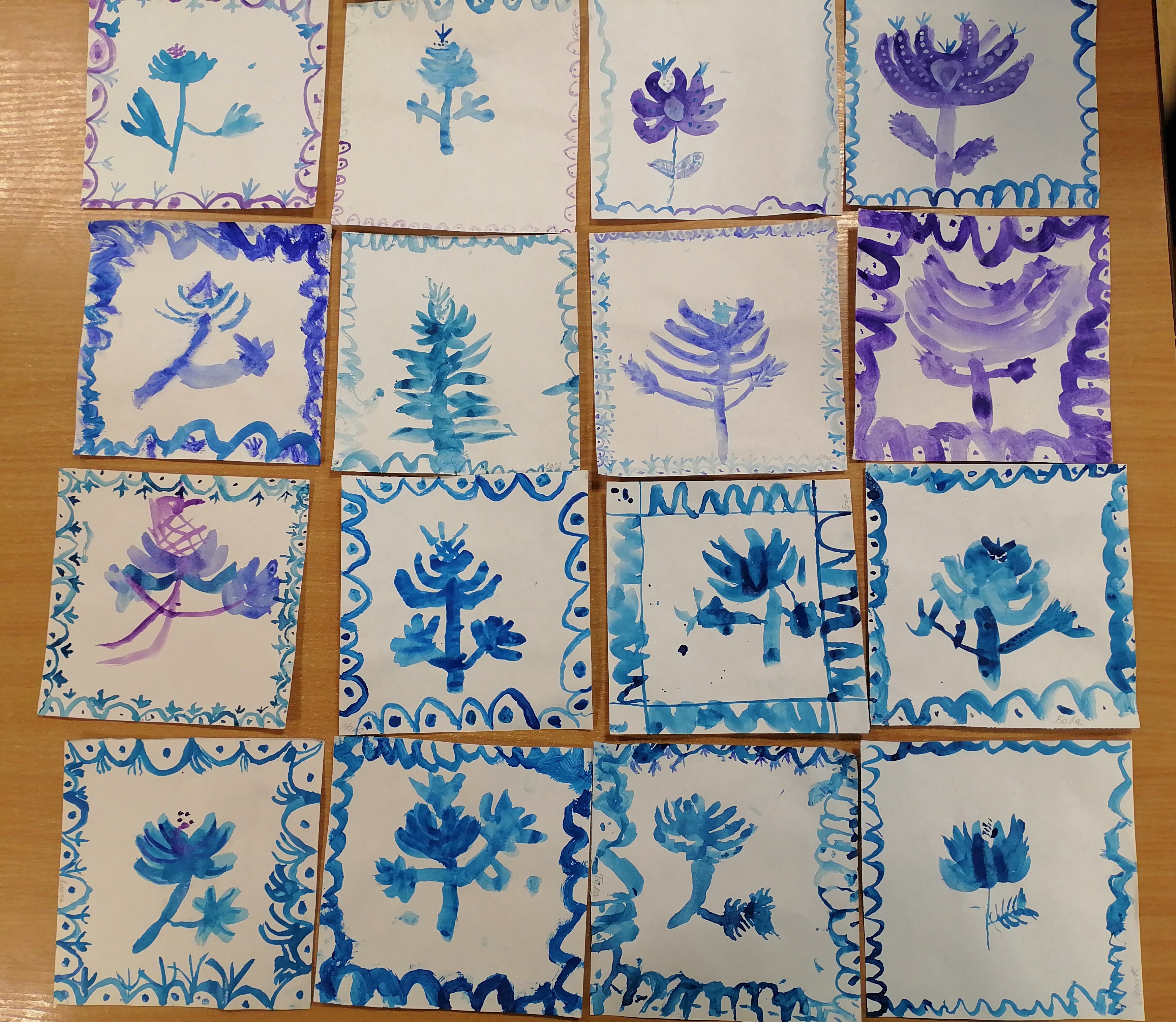 Итогом занятий стали яркие и оригинальные платочки, украшенные цветами и узорами, выполненными в стиле знаменитой гжельской росписи. Каждое изделие получилось уникальным, отражающим индивидуальность ребенка и его восприятие красоты окружающего мира.