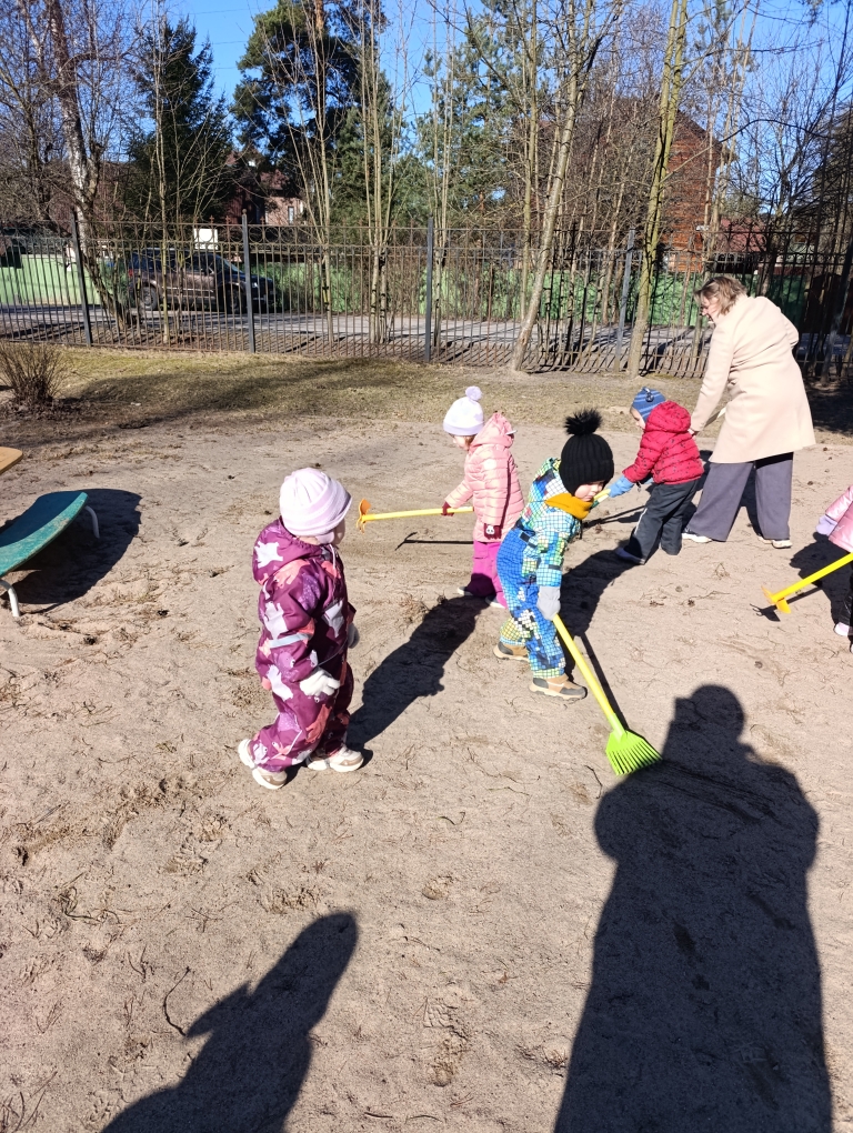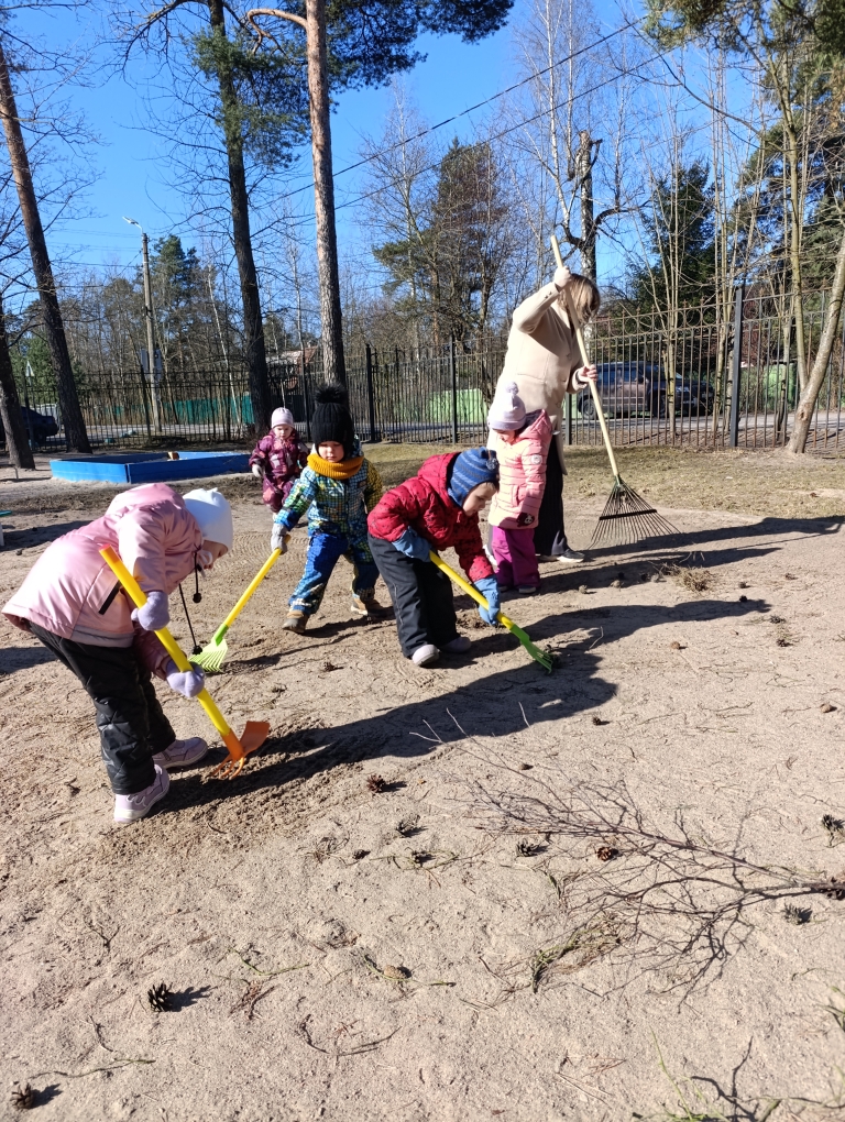 В группе раннего возраста прошла уборка площадки после зимы.