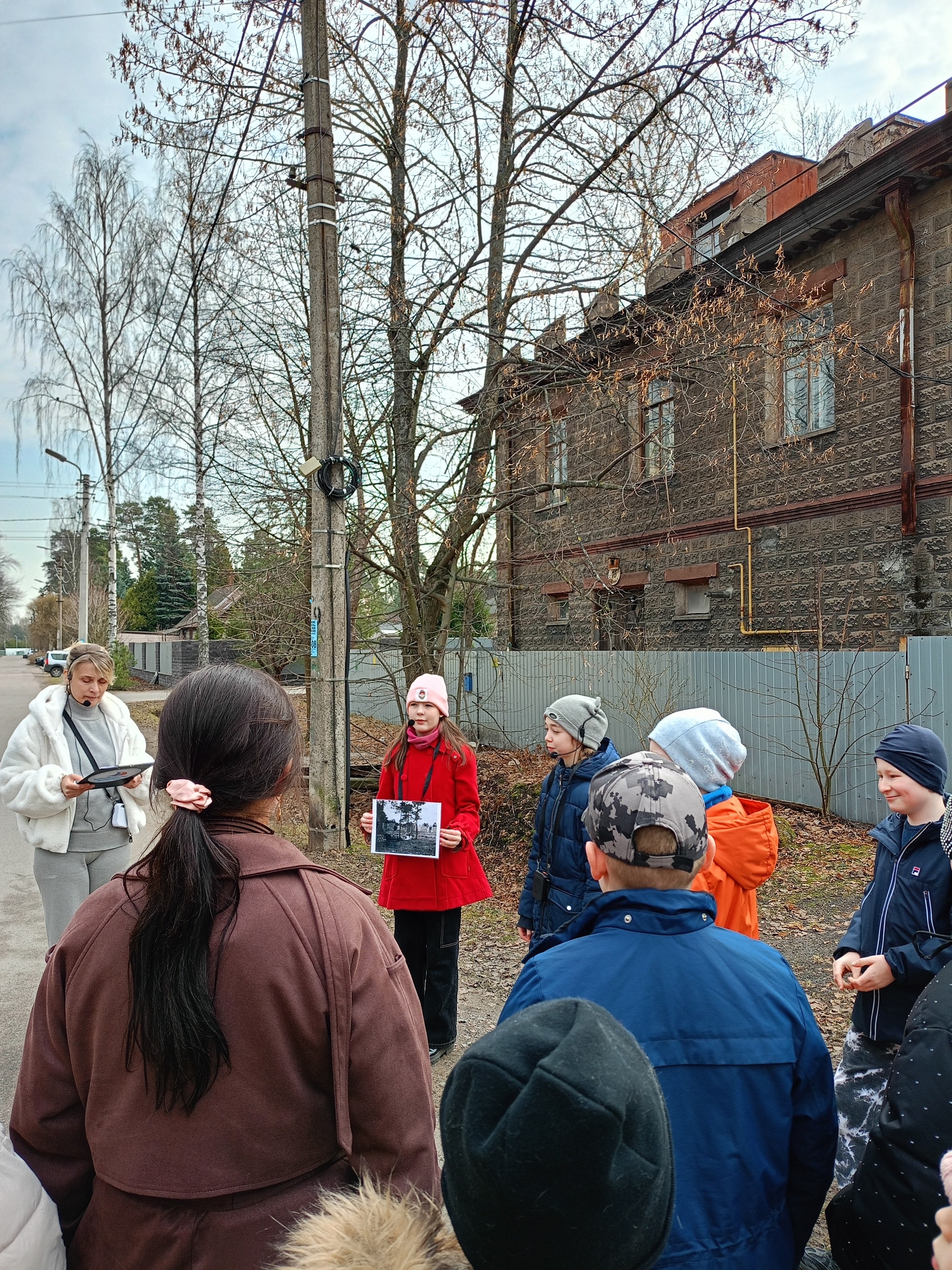 Первый день каникул запомнился нам увлекательной экскурсией под названием «Жемчужины посёлка Ольгино», которую организовала и провела со своими воспитанниками наша замечательная Наталья Николаевна Трухачёва. Участники экскурсии отправились в путешествие по объектам культурного наследия посёлка.