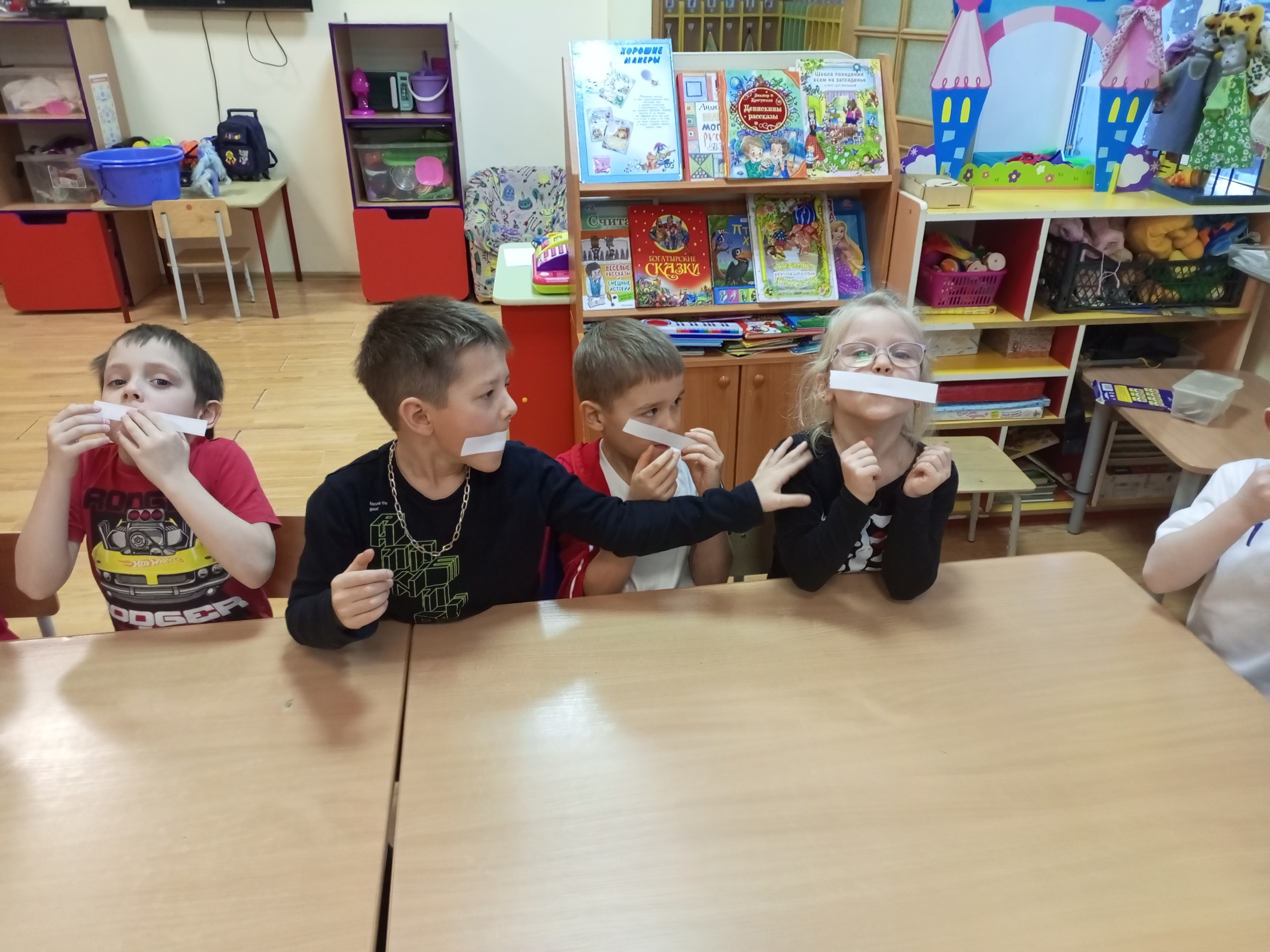 Занятие началось с обсуждения того, что такое воздух и как можно проверить, есть ли воздух вокруг нас. Для проверки детских гипотез были проведены опыты со стаканом и водой, с трубочками, с полосками бумаги и корабликом в воде.